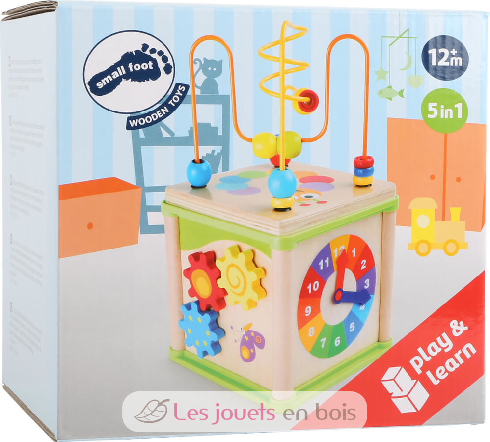 Este cubo de motricidad es muy funcional y además es ideal para las habitaciones dónde falta el espacio y no hay mucha superficie de juego. Un circuito de motricidad que puede levantarse, con ruedas dentadas, un reloj y piezas para encajar completan este dado que estimulará además la motricidad fina y la concentración de forma lúdica.