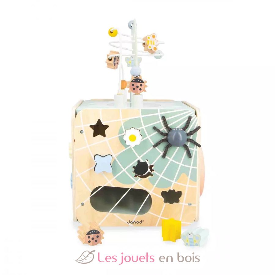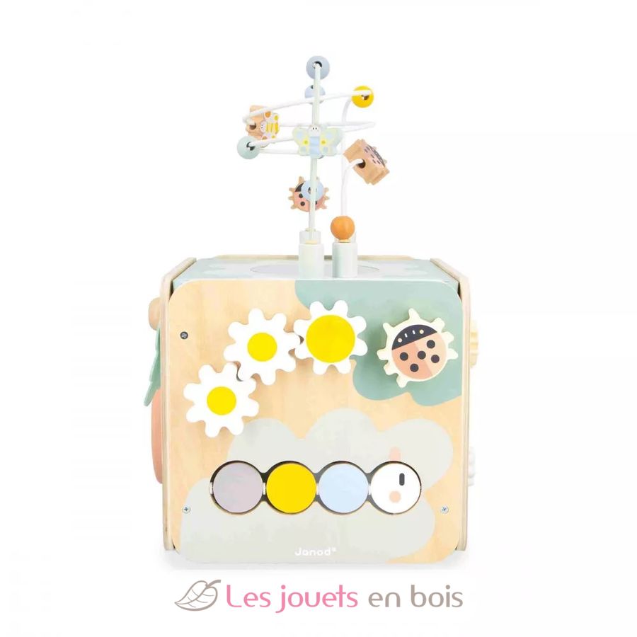Cubo multiactividad Sweet Cocoon, un juguete de madera de la marca Janod. Referencia J04060.