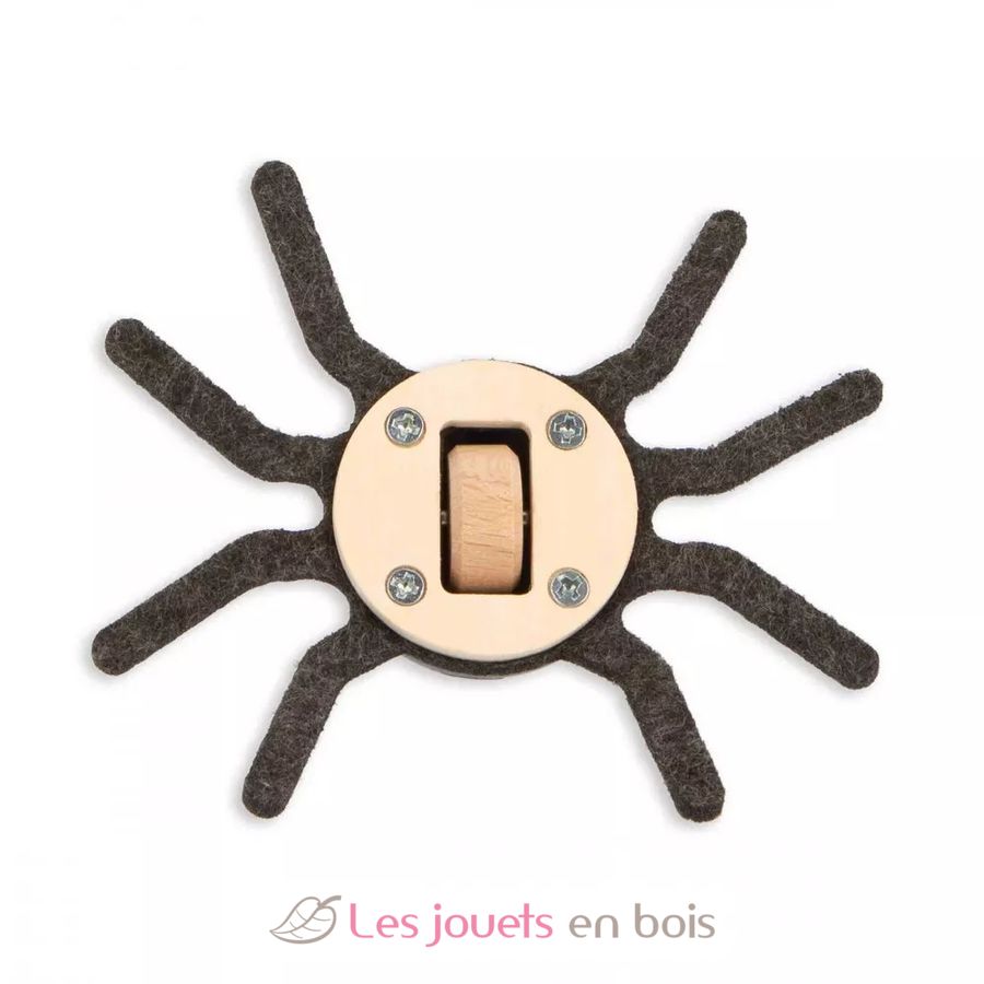 Pero aún queda por descubrir la sorpresa más divertida de este cubo para bebés: ¡se trata de una traviesa araña que ha tejido su telaraña junto a la caja de formas! Para recuperar las piezas que hayan caído dentro del cubo, el niño tendrá que pasar la mano a través de su telaraña. Pero eso no es todo: ¡este divertido insecto es magnético y por eso se sujeta a la telaraña! Fácil de agarrar y manejar, nuestra amiga la araña también puede rodar y lanzarse por el suelo para sorprender y divertir a toda la familia!