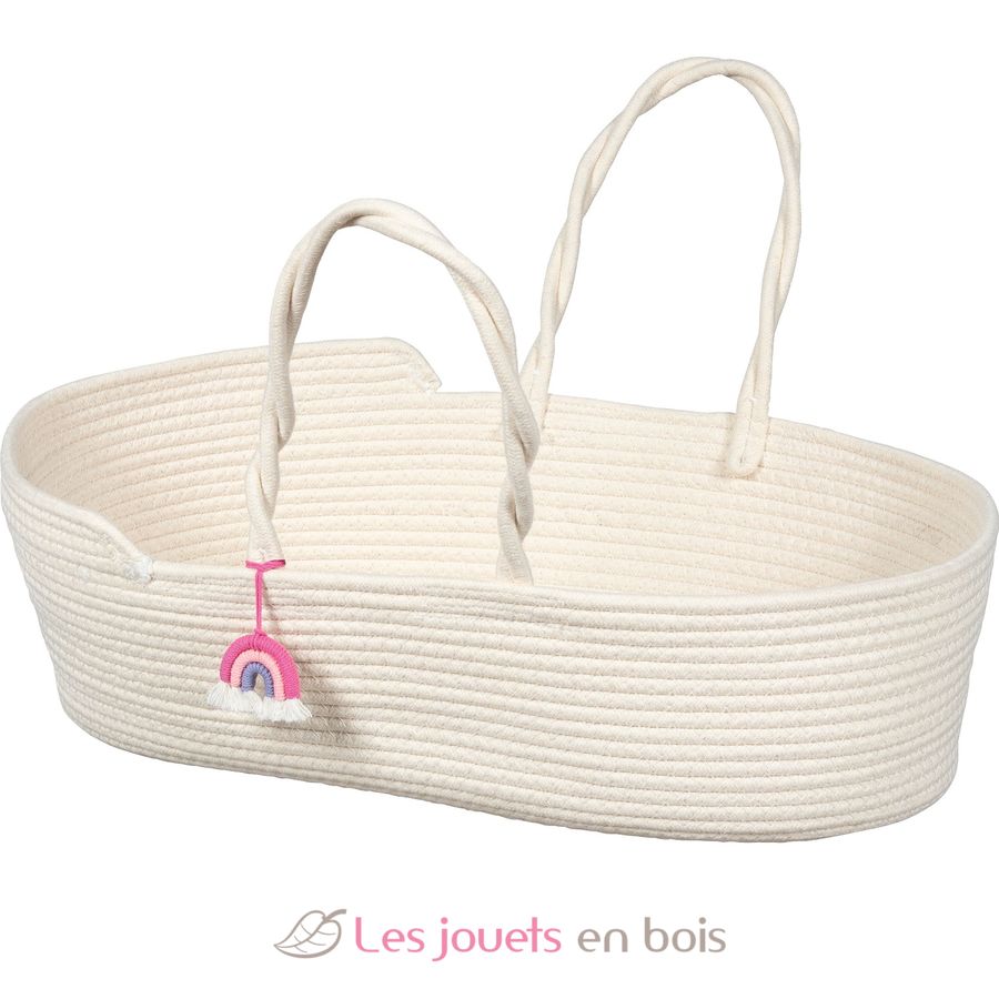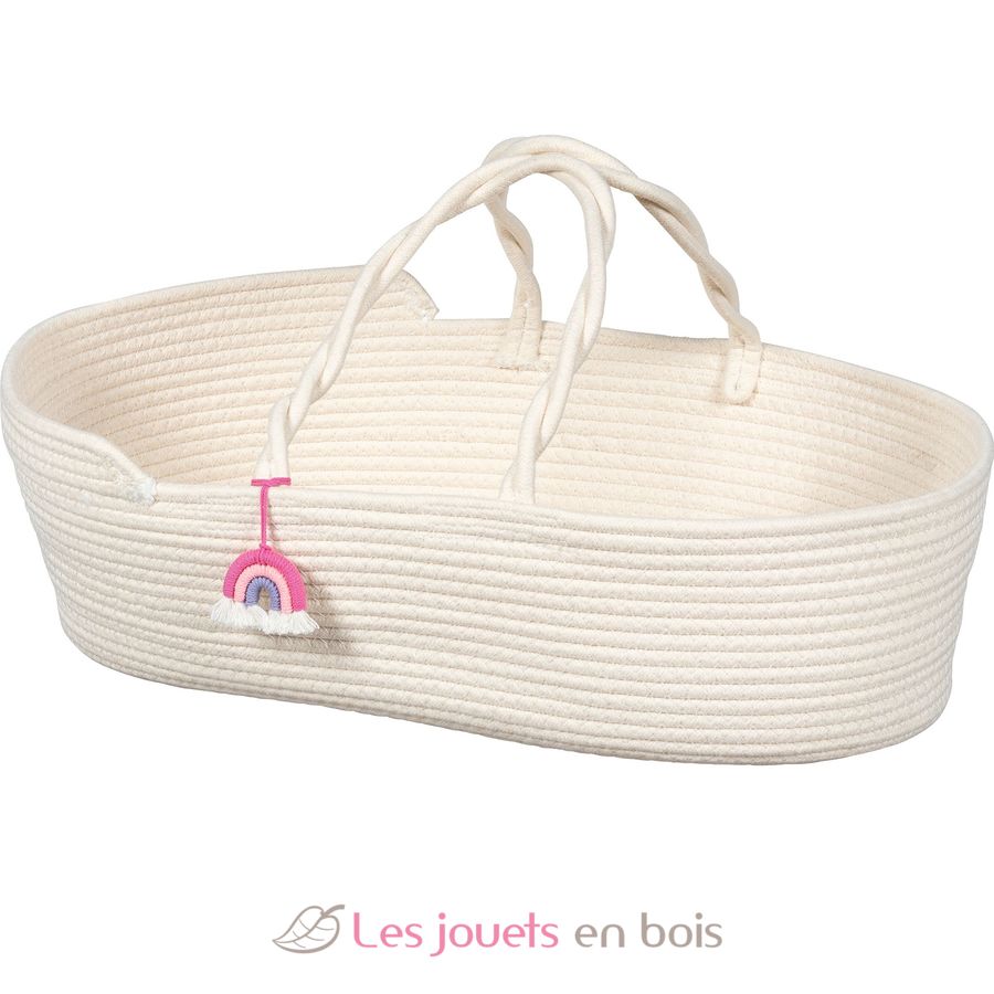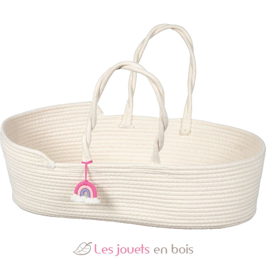 Esta cuna está decorada con un pequeño arcoíris extraíble que le da un toque de color alegre. La cesta para muñecas es resistente, ligera y se adapta perfectamente a las manos infantiles.