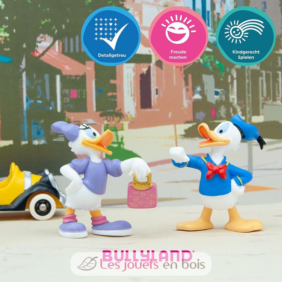 Daisy con una bolsa del dibujo animado de Disney Donald.Bonita figurita cuidadosamente pintada a mano. Dé a su hijo un mundo imaginario. Las figuras de Bullyland se convertirán rápidamente en la base de una colección que se irá ampliando poco a poco. Ref:15343