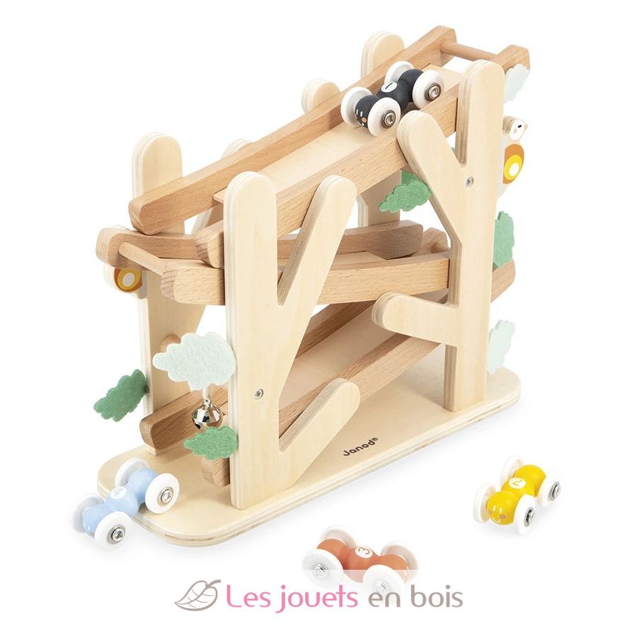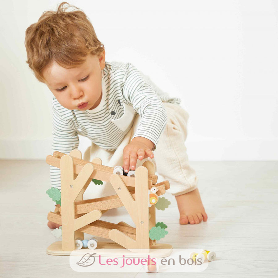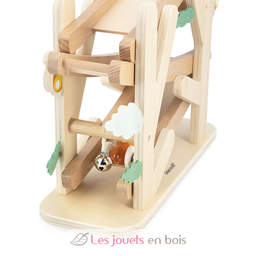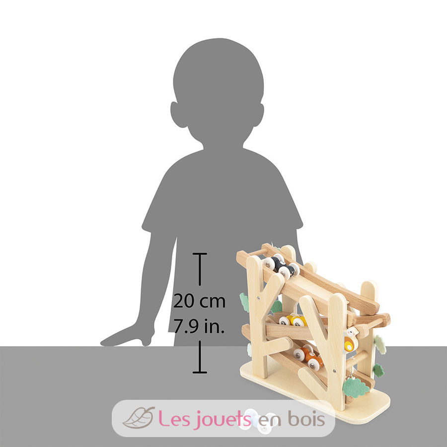 ¡Las hormigas corren! En este descensor de madera, los más pequeños, a partir de 12 meses, pueden hacer una carrera de intrépidas hormigas por la pendiente.