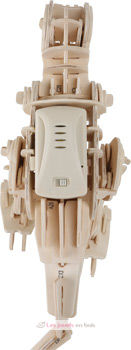 Este kit de madera es una construcción de alta gama en una pequeña ejecución. El T-Rex de madera maciza laminada es un modelo casi realista que consta de 85 piezas. Lo más destacado: el sistema mecánico a pilas permite mover los pies, la cola, la cabeza y el cuerpo en el conjunto. Los sonidos rugientes subrayan la originalidad. Instrucciones de montaje incluidas.