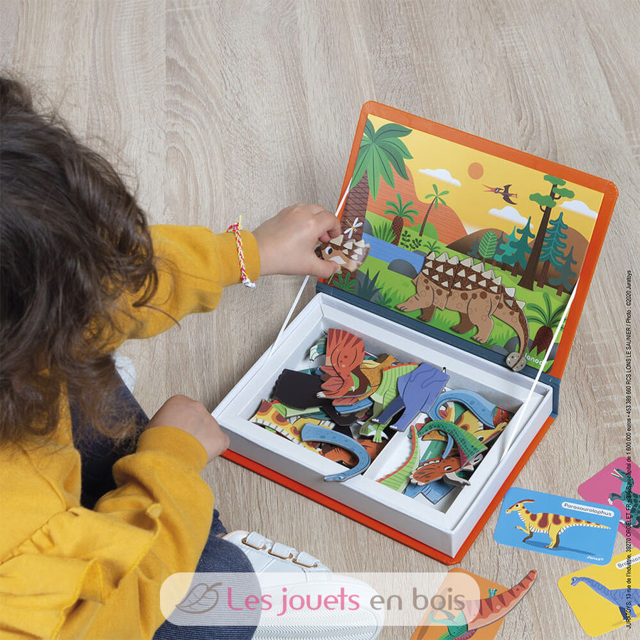 Los MagnétiBook son ingeniosos juegos educativos fáciles de transportar y guardar. Con los Magneti'Books ¡Crear animales e inventar historias será realmente un juego de niños! Los Magneti'books son perfectos para los viajes largos en coche o las largas esperas. Este juego educativo consta de 40 imanes y 10 tarjetas y transportará a los niños (a partir de 3 años) al fascinante mundo de los dinosaurios. Una vez abierto el libro, el objetivo del juego es recrear en el escenario magnético el dinosaurio que aparece en la tarjeta utilizando los imanes. Los peques de la casa también podrán divertirse mezclando las piezas para crear criaturas aún más terroríficas, ya que todas son intercambiables. Referencia J02590.