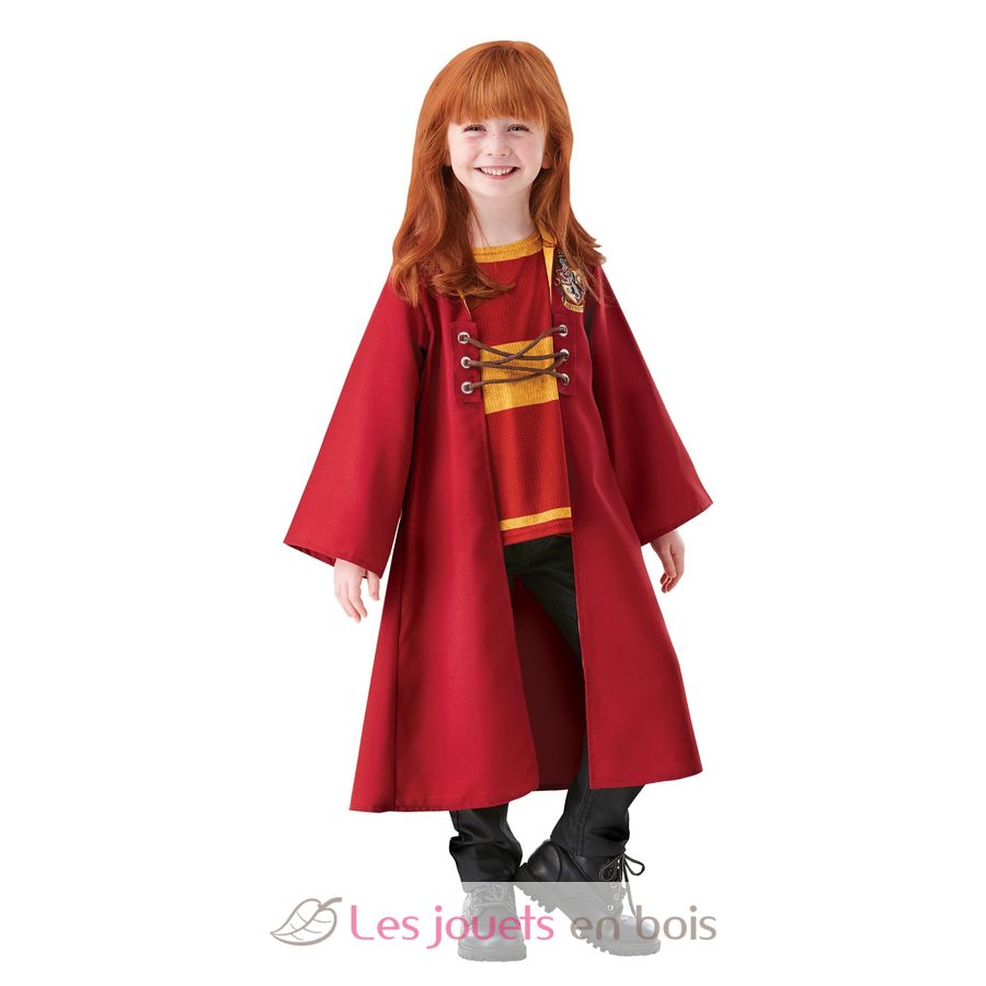 Este disfraz infantil incluye una capa de quidditch de tela roja y amarilla con capucha integrada, el escudo de Gryffindor impreso en el pecho, cierres con cordones en la parte delantera y una parte superior de jersey estampada integrada en la capa.