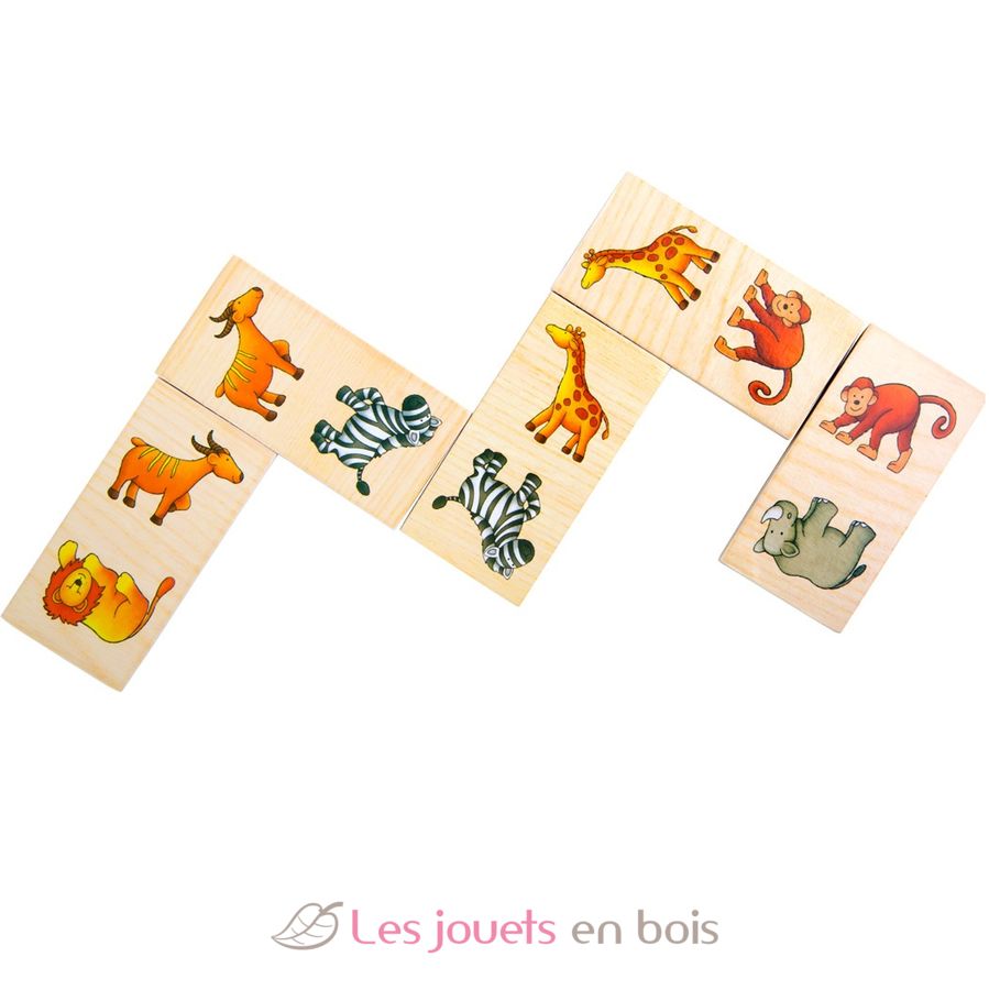 Este juego consta de 28 fichas de dominó fabricadas con madera certificada FSC que representan animales africanos.