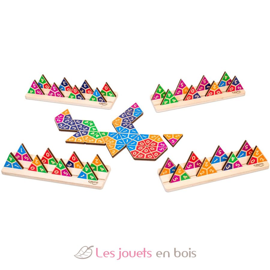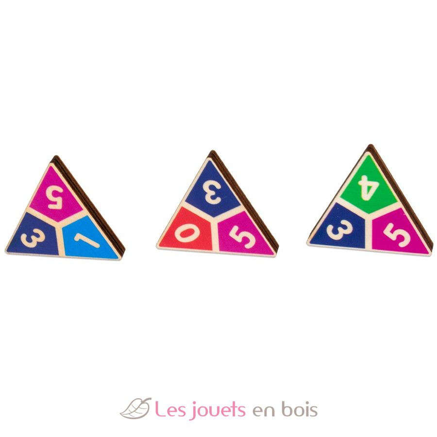 Esta es una variante del clásico dominó con fichas triangulares. El objetivo es conseguir la mayor cantidad de puntos posible colocando todas las fichas correctamente.