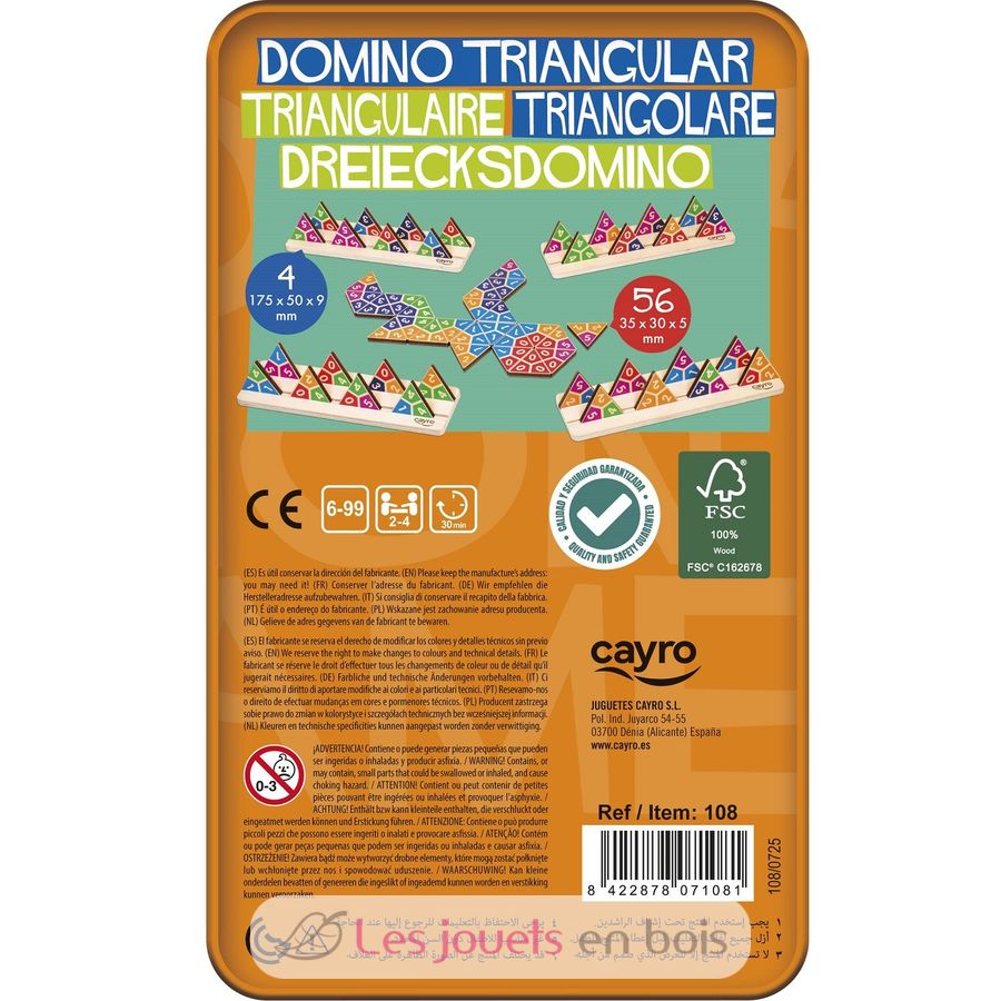 Dominó Triangular en caja metálica, un juego de mesa de Cayro.