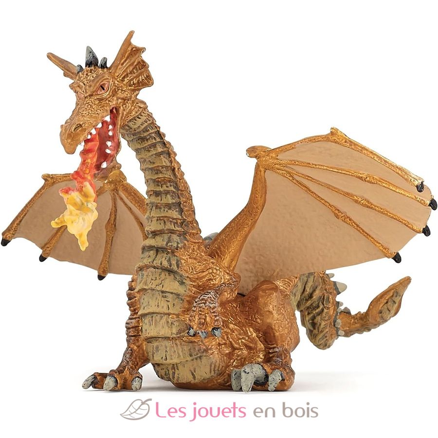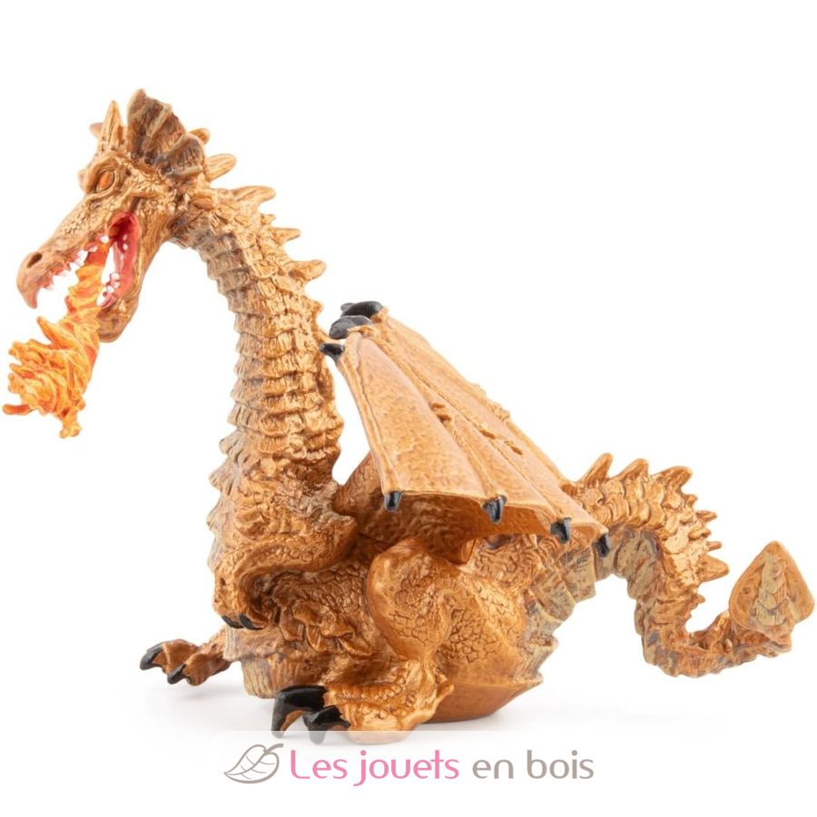 Dragón dorado con llama, una bonita estatuilla sobre el tema de los cuentos y leyendas, cuidadosamente pintada a mano y modelada de forma muy realista. Las figuritas Papo se convertirán rápidamente en la base de una colección que se irá enriqueciendo poco a poco para el despertar y el descubrimiento de su hijo. Ref: 39095 A partir de 3 años.