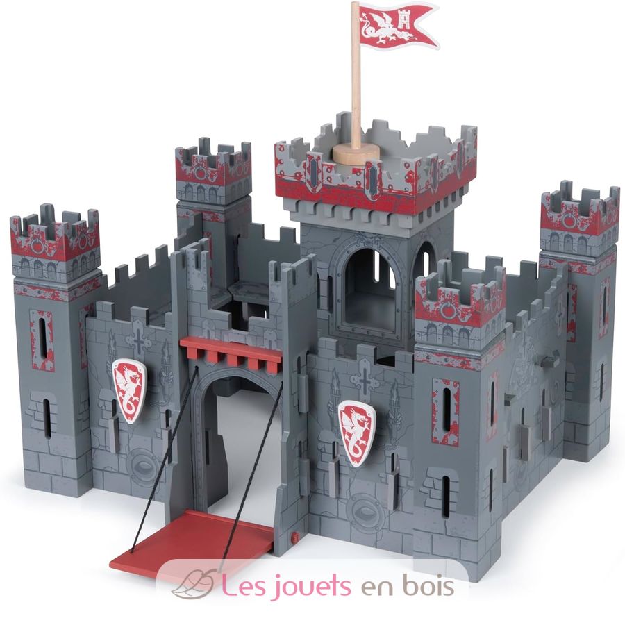 El comprende : 1 torre grande, 4 torres pequeñas, 2 muros grandes, 2 muros intermedios, 1 puente levadizo, 6 barandillas (2 grandes, 4 intermedias), 14 soportes de barandillas, 8 escudos rojos, 1 bandera y una escalera. Figuras no incluidas.