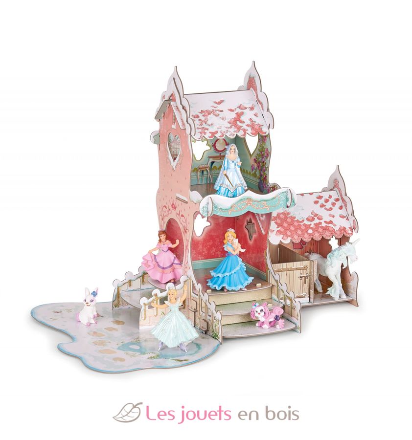 En este set especial de invierno el castillo de la princesa Isiplay se ha cubierto de nieve. Este entorno de juego de cartón de calidad es fácil de montar y viene con dos figuras exclusivas; la princesa y el mago de la nieve, ofreciendo un completo universo de juego que hará las delicias de tu hijo.