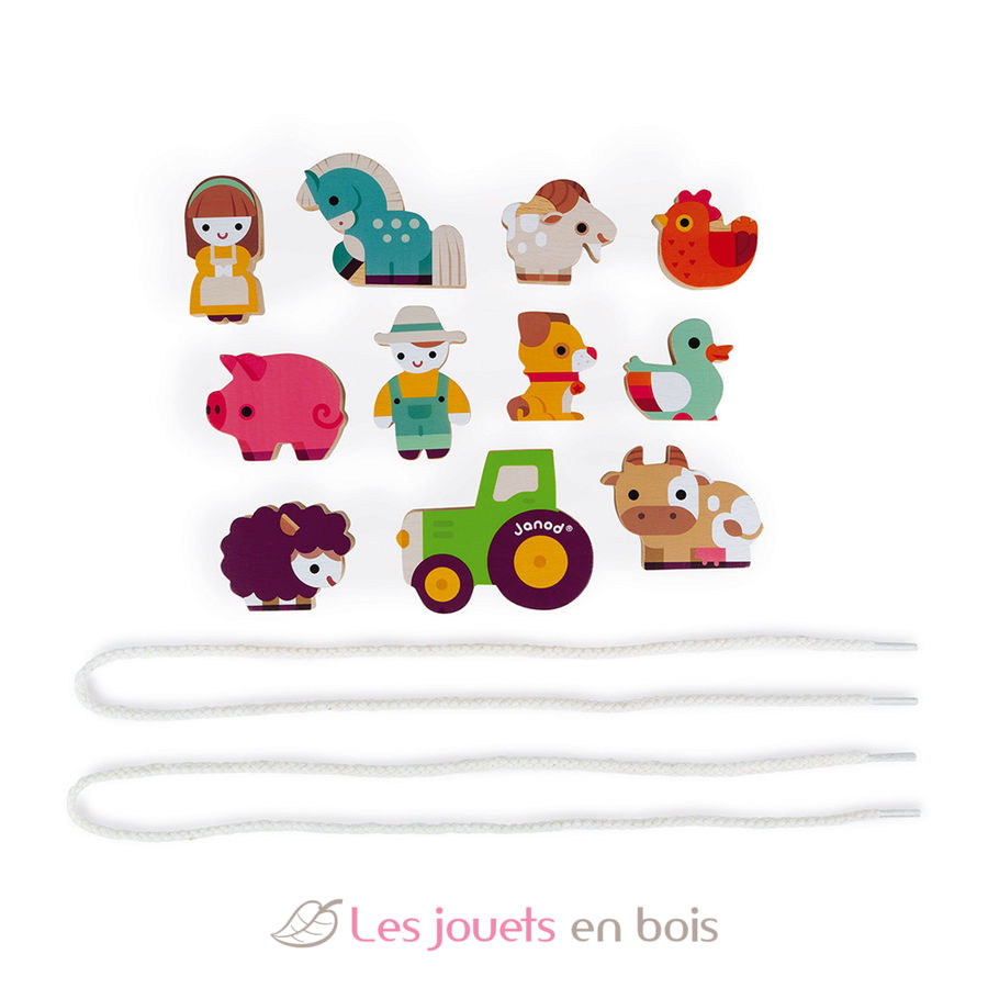 Granja de cuentas ensartadas, un juego creativo de la marca Janod. Referencia J05315.