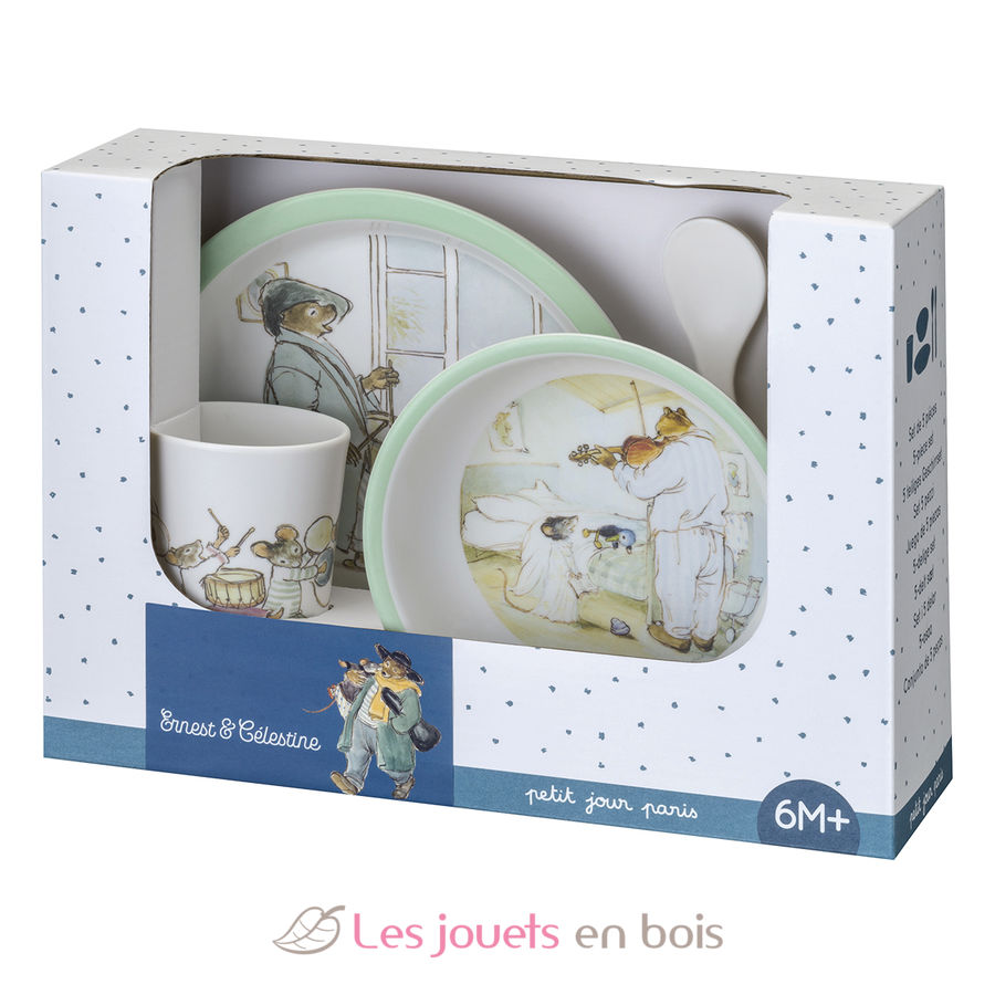 Caja de 5 piezas Ernest et Célestine, una vajilla infantil de la marca Petit Jour.