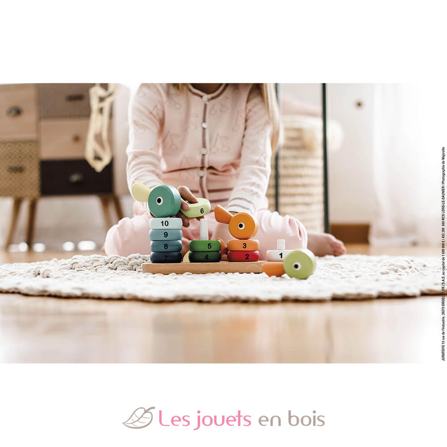 Familia de patos empilables, un juego de construcción con 14 piezas para apilar. Con este juguete apilable, su hijo aprenderá a contar hasta 10 mientras se divierte. Un juego de aprendizaje temprano que también permitirá a su hijo desarrollar la coordinación visual y la destreza. Stackable Duck Family, un juego con colores armoniosos, de Janod. Ref. J08212