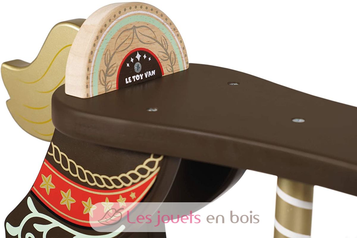 ¡Te presentamos este bonito caballito balancín de madera! A partir de 12 meses. Este caballito balancín es una versión moderna y única de los típicos caballitos de los tiovivos que solíamos ver en las ferias. Este resistente balancín ha sido fabricado con madera de hevea y contrachapado y decorado con detalladas ilustraciones y acabados en pintura dorada y purpurina. Este caballito balancín es ideal para desarrollar la movilidad y el equilibrio de los niños pequeños a través del juego. Caballo balancín Tiovivo de Feria, un balancín de madera de la marca Le Toy Van. Referencia PL140.