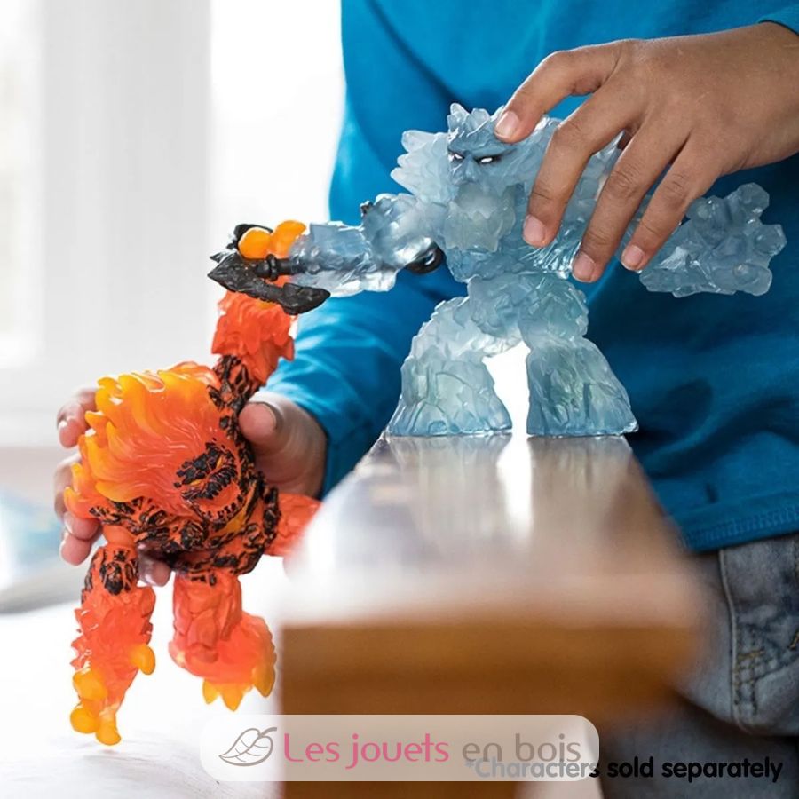 El Demonio de Lava de Schleich Eldrador Creatures emite un calor tan intenso que (casi) nadie se atreve a acercarse. De hecho, quienes lo atacan saben que cualquier cosa que toque al gigante llameante estalla en llamas. Su enorme cuerpo está hecho de roca volcánica fundida y su cabeza está coronada por una melena incandescente. A pesar de su enorme apariencia, el Demonio de Lava es extremadamente ágil, lo que lo convierte en un oponente formidable: gracias a su capacidad para girar todo su torso, ningún movimiento pasa desapercibido. Cualquiera que se acerque es identificado al instante. Gracias a sus brazos articulados, atrapa a sus enemigos a la velocidad del rayo y los sacude con fuerza. El Demonio de Lava también puede mover la mandíbula: en cuanto la abre, emana llamas y un aliento abrasador, que no solo huele a roca quemada, ¡sino que también es insoportablemente caliente!