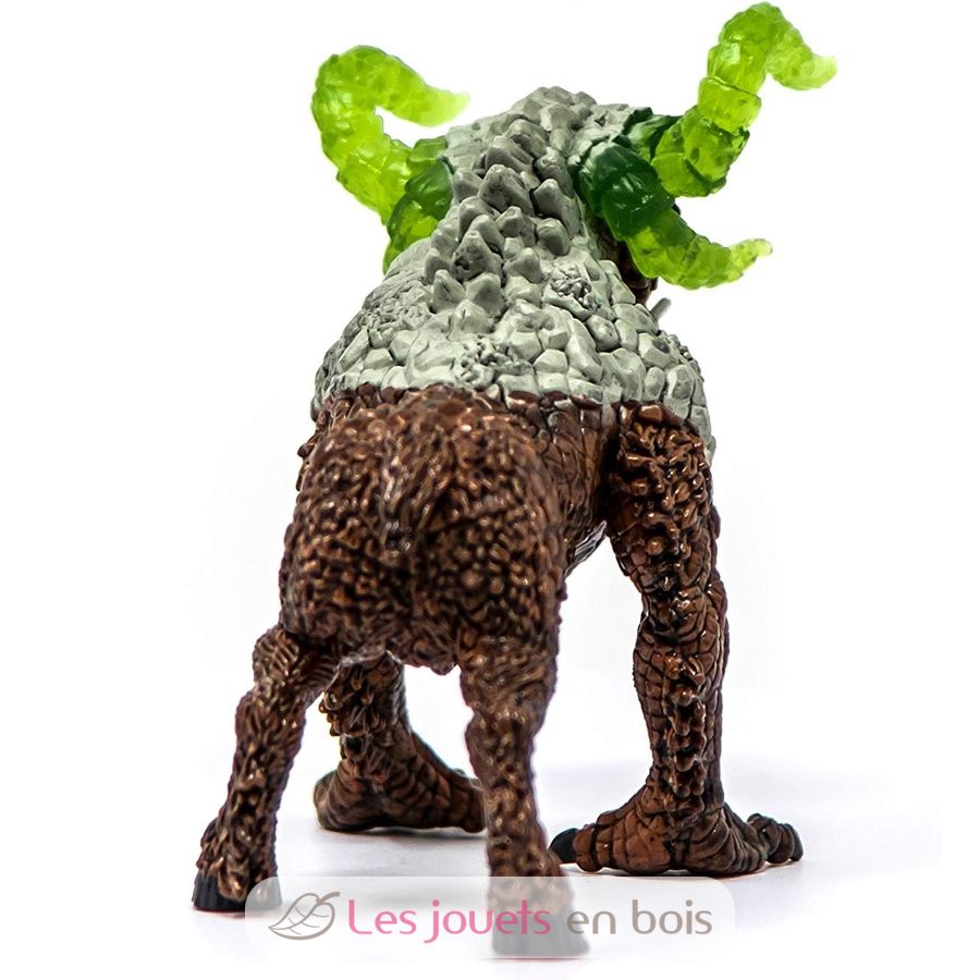 Es un coloso: el carnero de piedra ELDRADOR® Criaturas de schleich® vive en las montañas inaccesibles y empinadas del mundo de la piedra. Sus patas delanteras están equipadas con poderosas y afiladas garras que le permiten escalar sin esfuerzo acantilados empinados. Sus venenosos ojos verdes detectan el más mínimo movimiento, y cualquier intruso se encuentra de inmediato en el punto de mira de este ser solitario y peligroso. Tan pronto como ve al enemigo, el carnero de piedra comienza a cazar. Si hay una lucha, el terrible cuadrúpedo tiene mejores activos: su cuello blindado es ultra poderoso y resiste todos los ataques violentos. Pero eso no es todo: su cabeza, erizada de cuatro cuernos de cristal mágico, le permite asestar un golpe mortal a los enemigos. Un toque de sus cuernos de color verde brillante es suficiente para petrificar a sus oponentes.