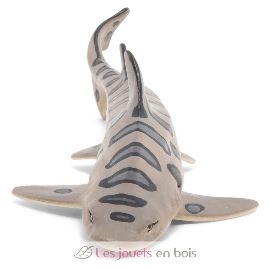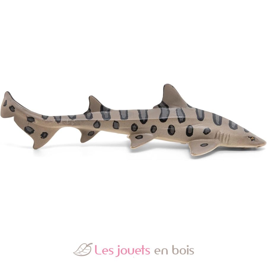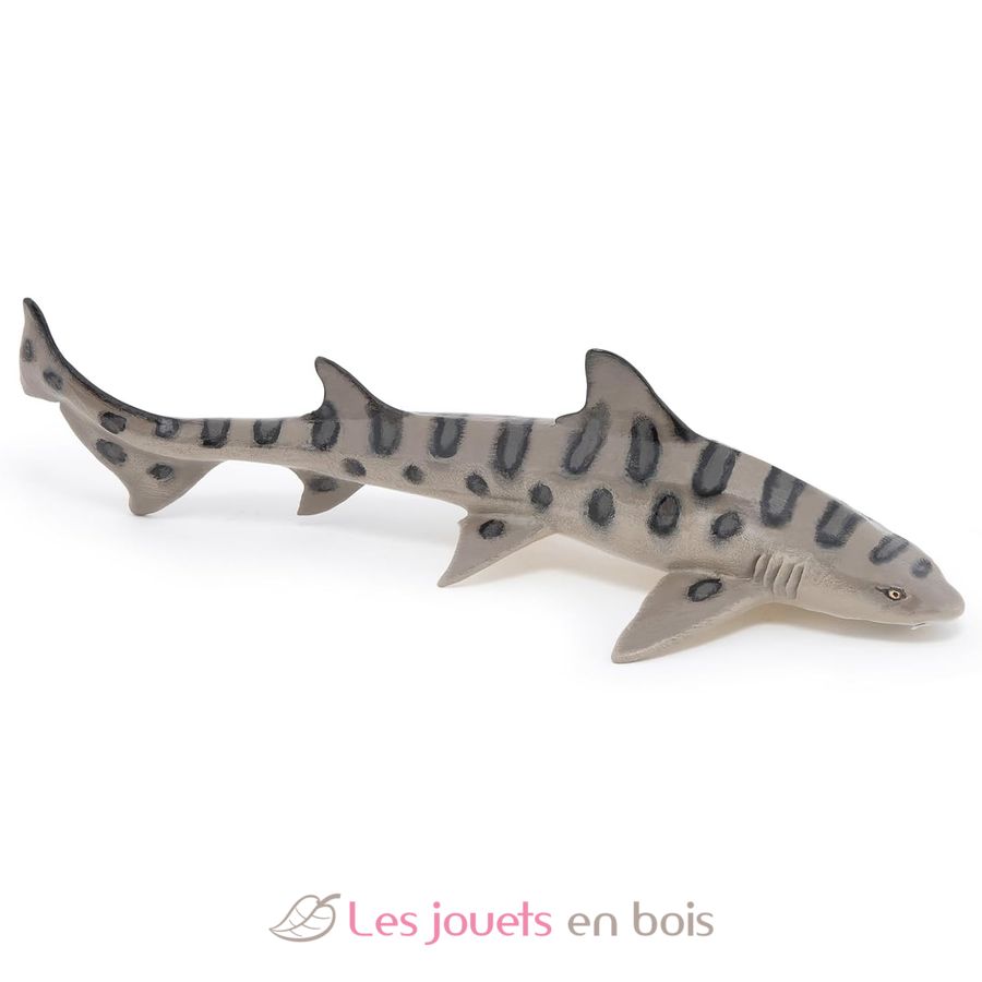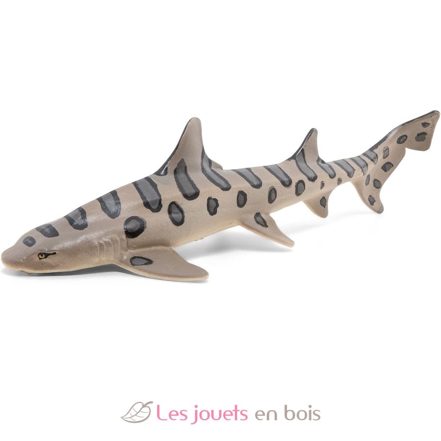 El tiburón leopardo de Papo con su vestido manchado como el del leopardo, vive generalmente pegado a los fondos arenosos de los arrecifes de coral en los océanos Índico y Pacífico. Nadador activo, se alimenta principalmente de moluscos y crustáceos. Este pez grande, bastante pacífico y no muy tímido no es agresivo con los humanos.