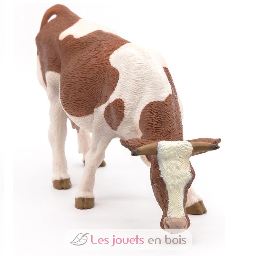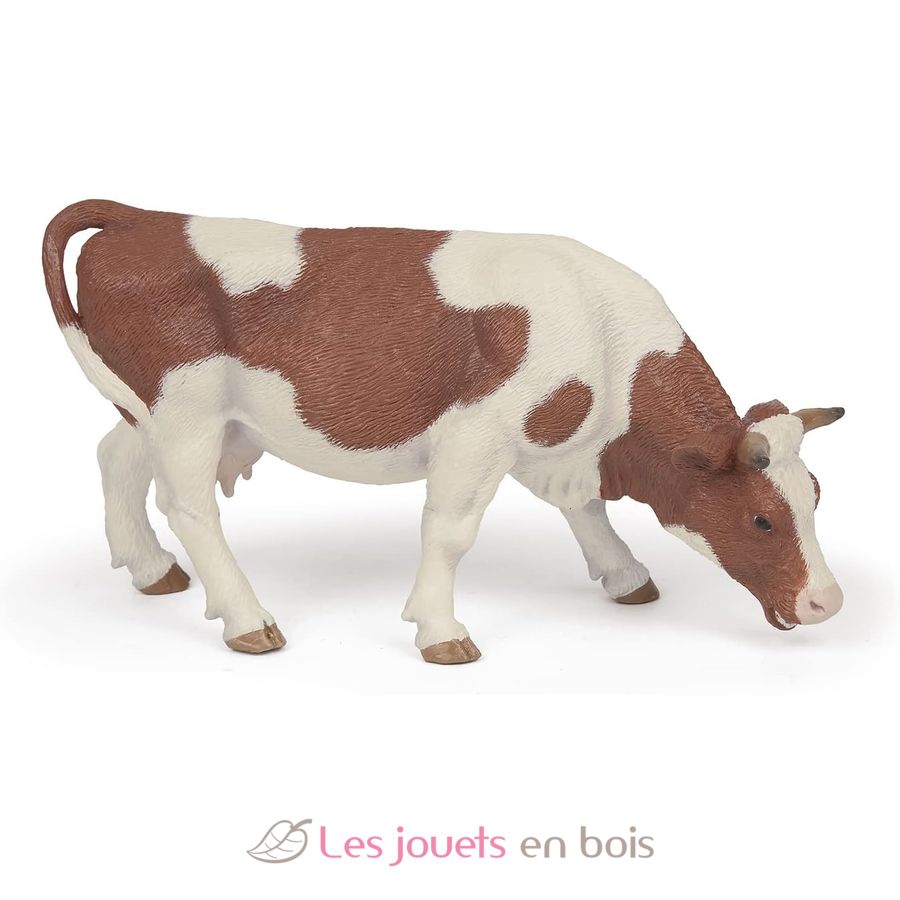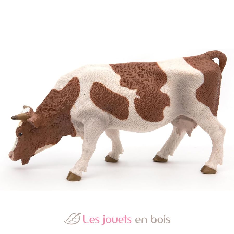 Vaca Simmental pastando, una bonita figura sobre el tema de la vida en la granja, cuidadosamente pintada a mano y modelada de forma muy realista. Las figuras de Papo se convertirán rápidamente en la base de una colección que se enriquecerá progresivamente para el despertar y el descubrimiento de su hijo.