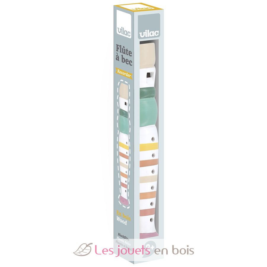 Flauta dulce de madera con rayas multicolor, un juguete musical de Vilac.