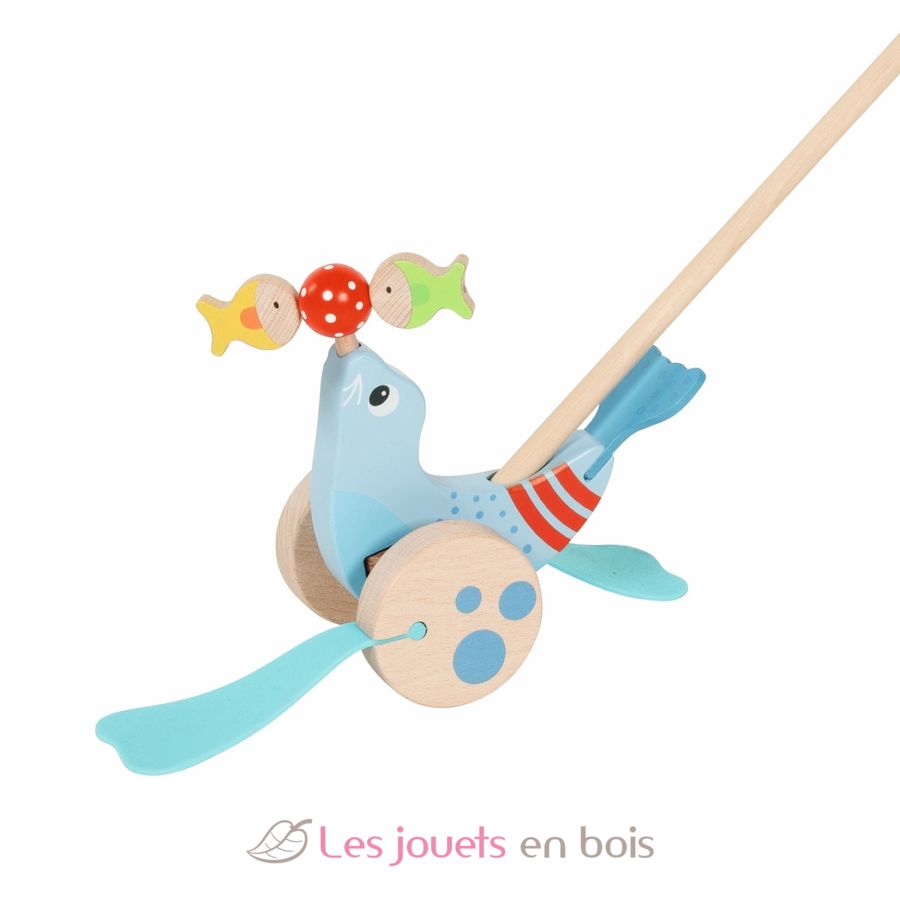 Foca para empujar, un juguete de madera ideal para acompañar a tu hijo en sus primeros pasos a partir de los 18 meses.