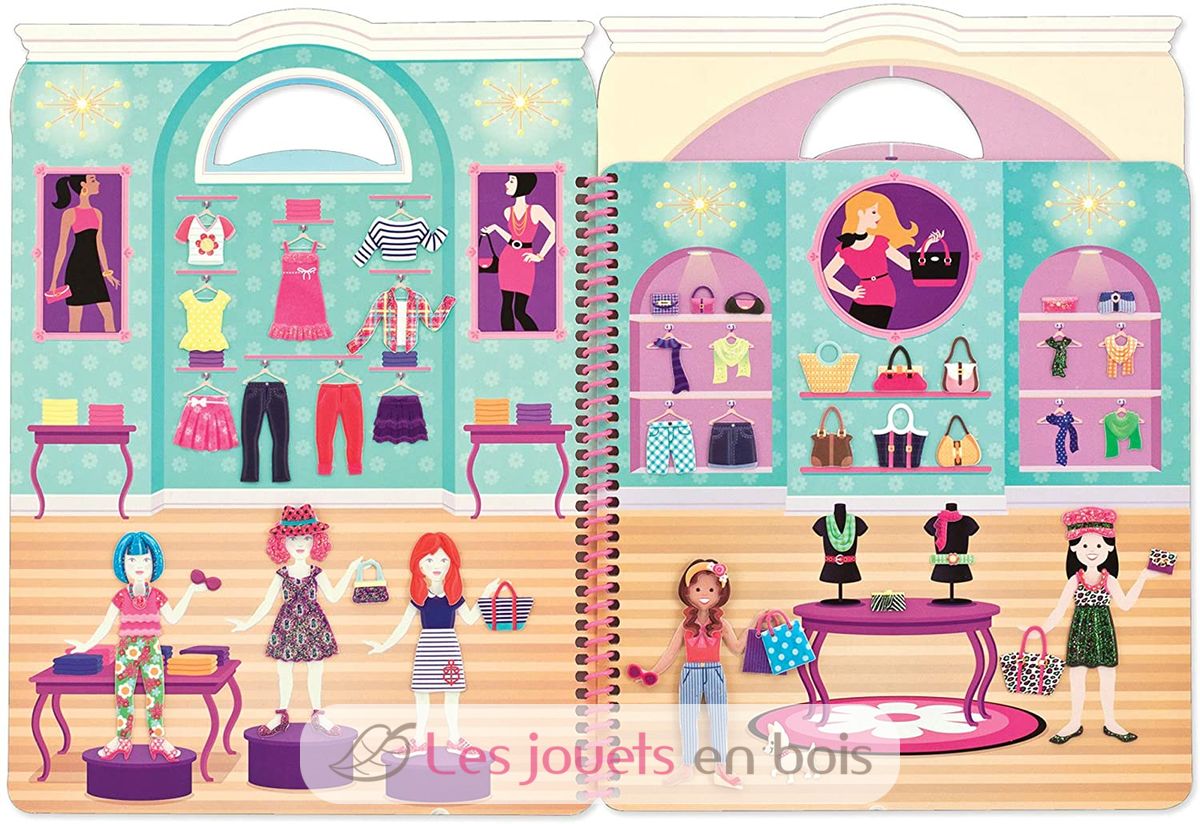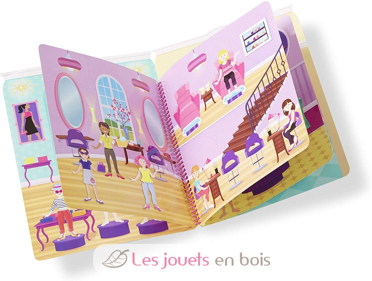 El libro, encuadernado en espiral, contiene 10 robustas escenas de fondo, cada una de las cuales proporciona un fabuloso telón de fondo para que los personajes vayan de compras, se relajen o se mimen. Las pegatinas de los personajes pueden superponerse con las pegatinas de moda para crear elegantes conjuntos que se mueven con ellos por el libro. . . o levántala limpiamente para cambiar de ropa una y otra vez. Hay 196 pegatinas en total para rellenar las 10 escenas reutilizables, incluyendo una boutique de moda, un salón de zapatos, un spa, un mostrador de maquillaje, etc. ¡Sólo tienes que abrir el libro para formar parte de la aventura de la moda!