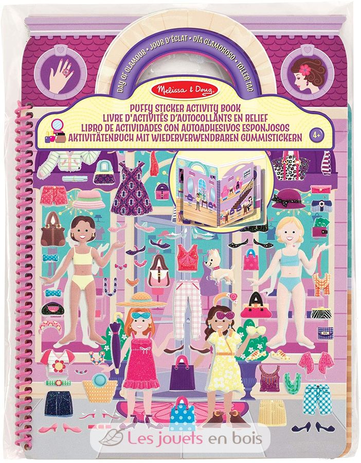 El libro de actividades de pegatinas "Day of Glamour Puffy Sticker" permite a los niños contar una historia de pegatinas llena de diversión con la moda."