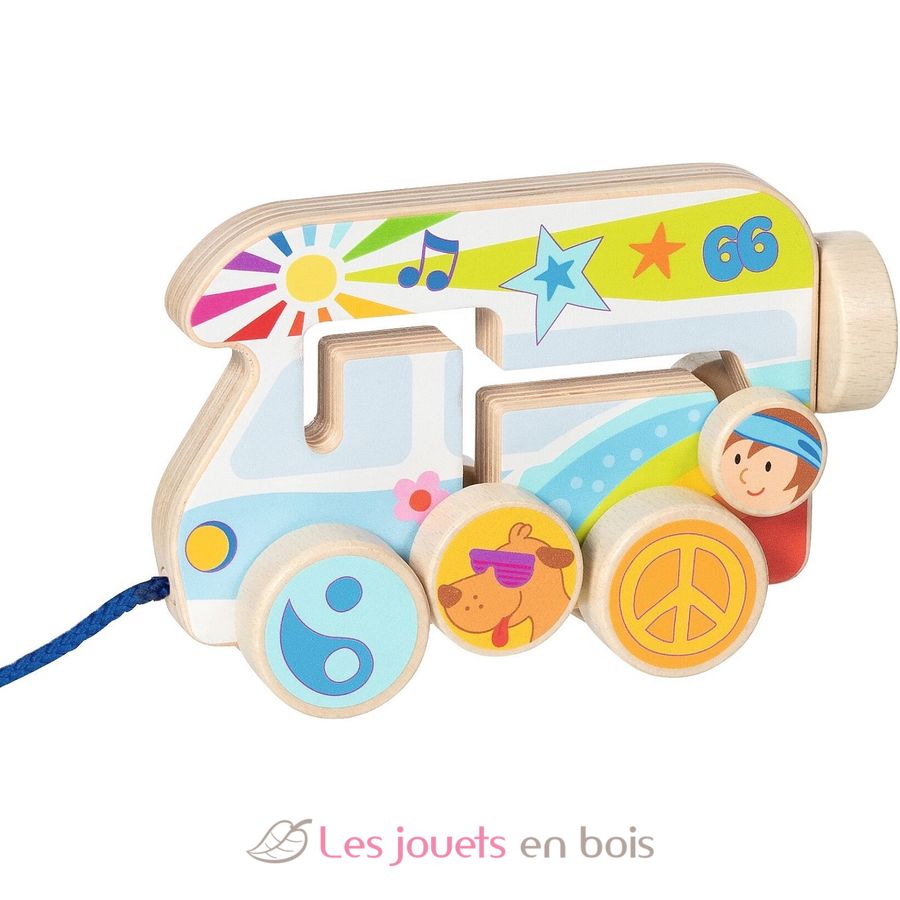 Furgoneta per arrastre, un juguete de madera de Goki.