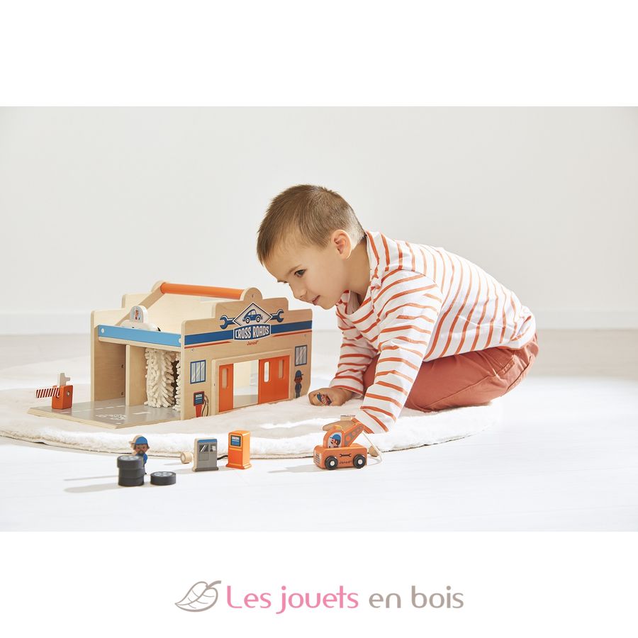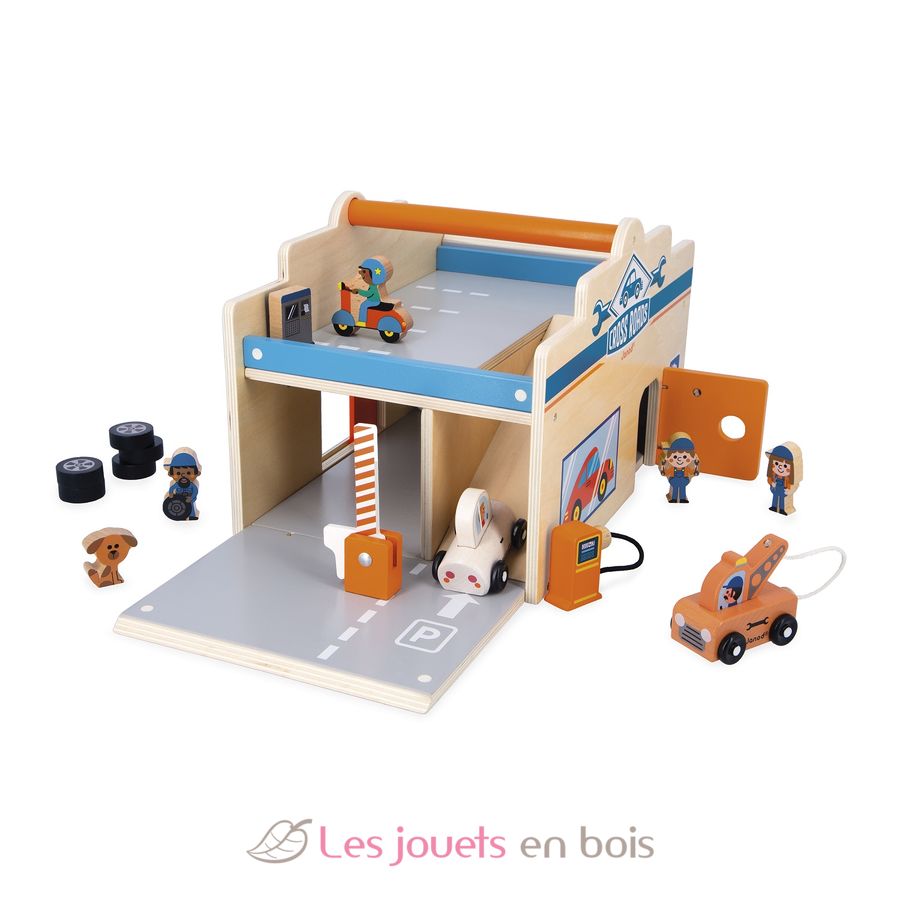 ¿Avería? ¡Vamos a ver al mecánico! Este garaje de madera es apto para niños a partir de 2 años. Con sus múltiples características, es el lugar perfecto para dejar el coche: ¡estará listo para nuevas aventuras! Con sus numerosos accesorios, este garaje hace que el juego sea aún más realista y estimula la imaginación de los pequeños mecánicos.