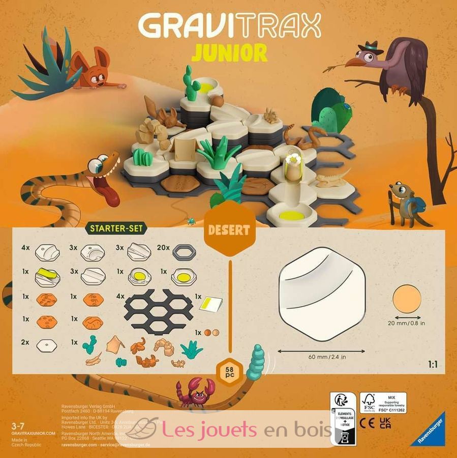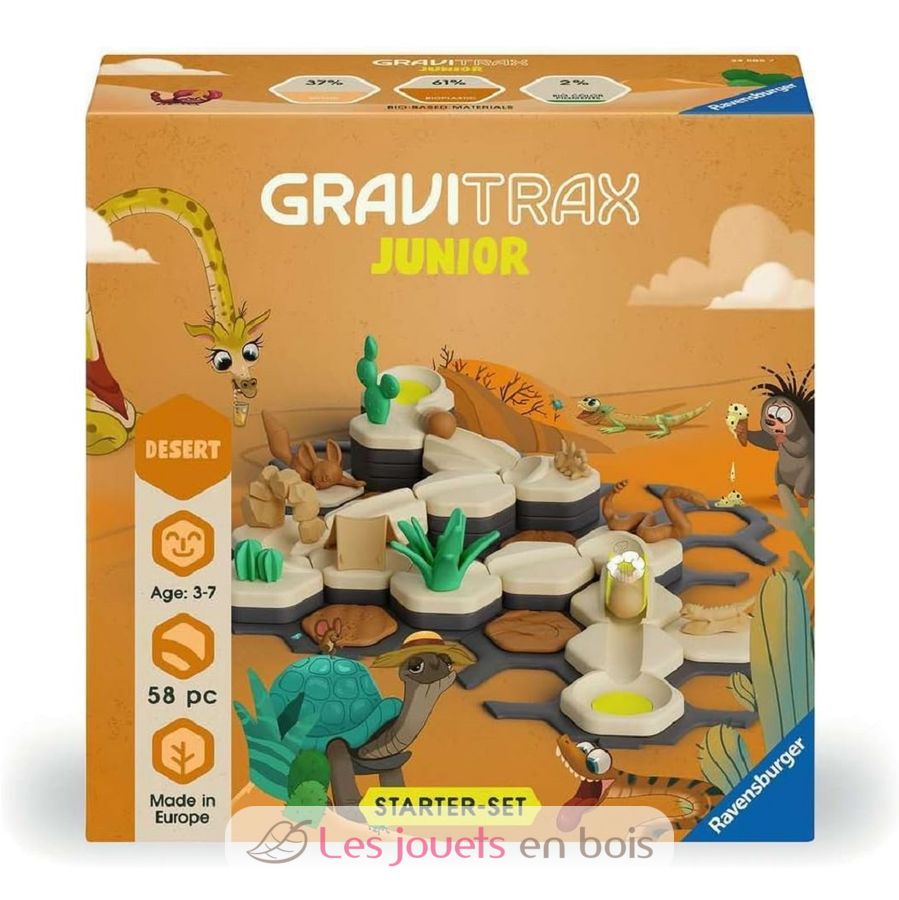 El set de inicio GraviTrax Junior My Desert contiene todo lo que necesitas para comenzar a construir y sumergirte de inmediato en el mundo del desierto. Con una variedad de elementos del desierto y figuras de animales incluidos en el kit, los niños de 3 años en adelante pueden experimentar el mundo del desierto de cerca mientras juegan.