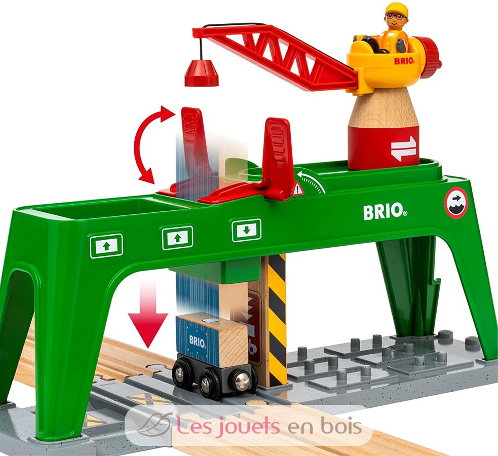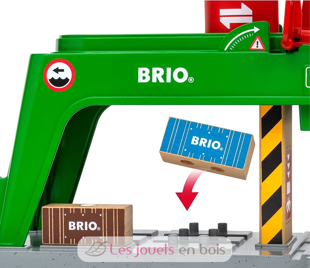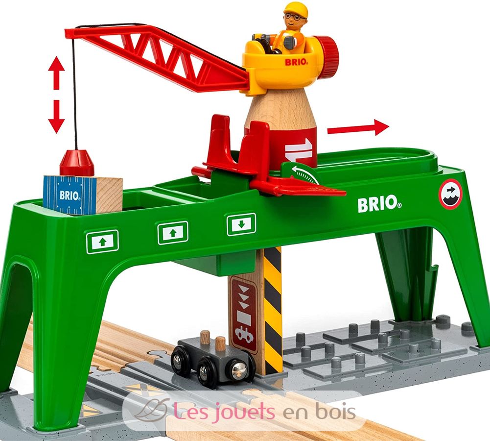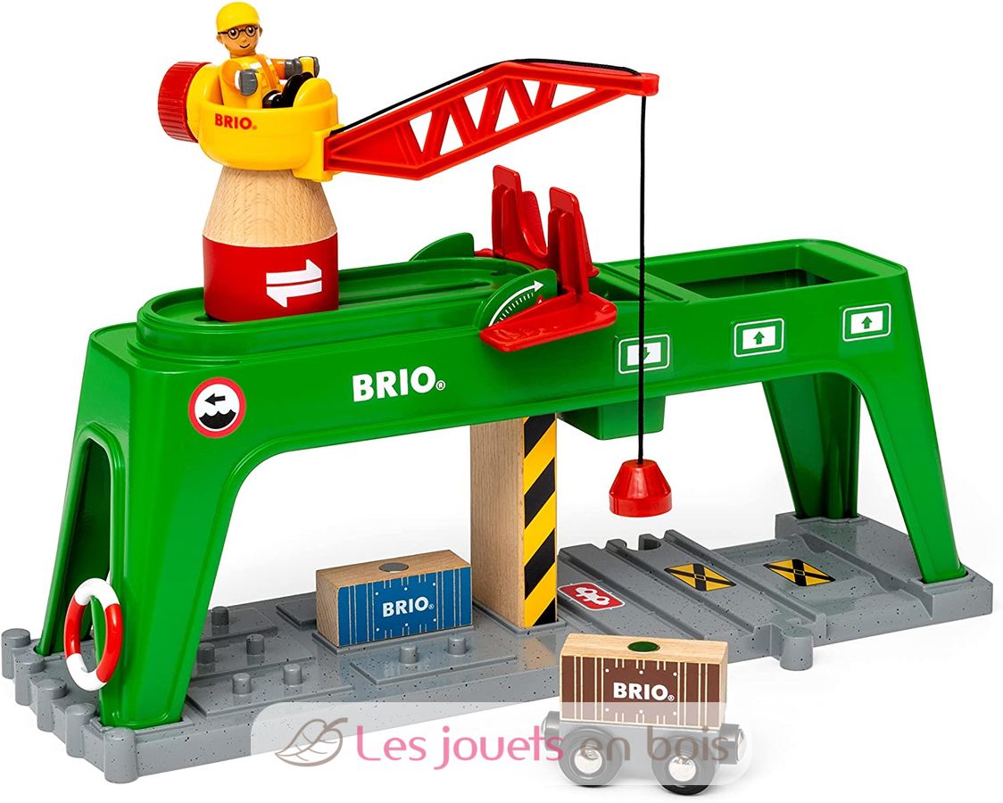 Da vida a tus viajes en tren de Brio World con esta grúa de carga de doble vía. Equipada con una estación de control giratoria de 360 grados que puede avanzar o retroceder, esta grúa de 22 cm de altura dispone de un gancho magnético para levantar las cargas que llegan desde los barcos y transferirlas a las 2 vías del tren, o viceversa. Esta grúa de carga de doble vía incluye 1 figura, 1 grúa de doble vía, 1 vagón de carga, 2 cargas magnéticas y 1 accesorio de salvavidas.