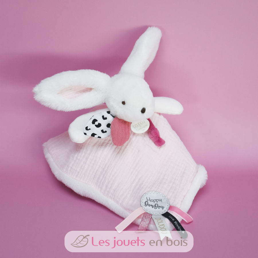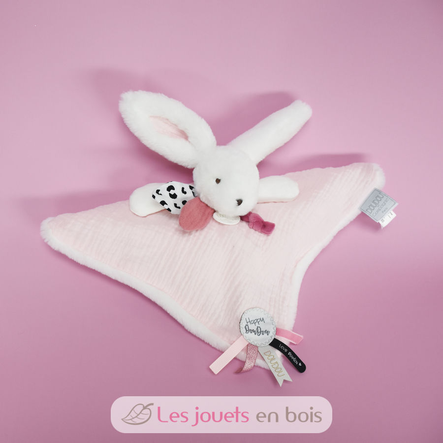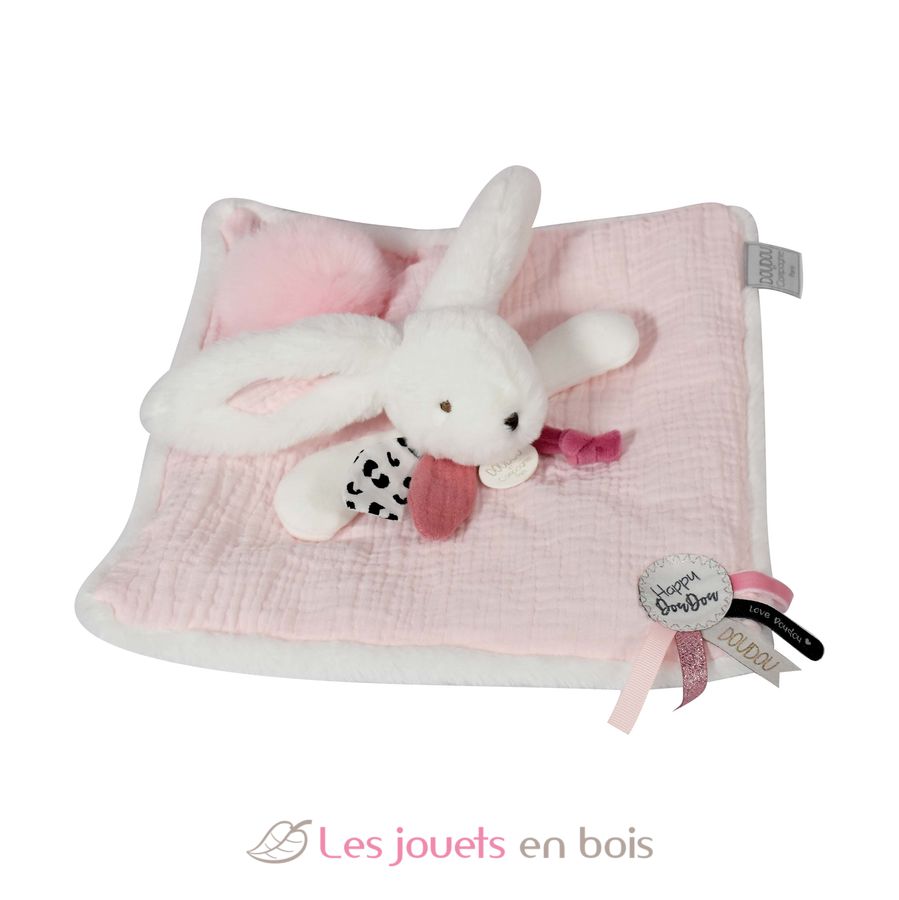 Conejo Pompón Rosa Doudou de la gama Happy Blush, un peluche de Doudou et Compagnie que acompañará al bebé a todas partes
