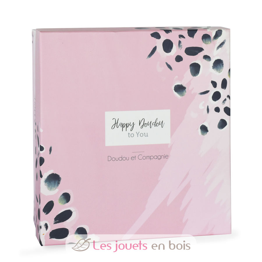 Este alegre conejito brilla por su frescura. Enclavado en una magnífica caja de regalo con gráficos que evocan a la vez modernidad y lujo, como en un estuche mágico, este peluche sorpresa se desvela con delicadeza... los primeros momentos se saborean descubriendo su pompón que sobresale de la caja. Un regalo ideal desde el nacimiento.