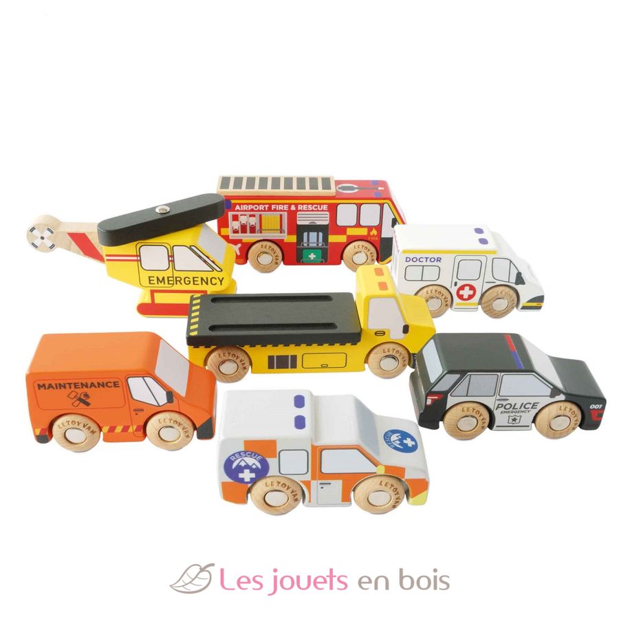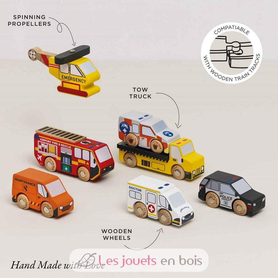 Helicóptero de emergencia y vehículos de rescate, vehículos de madera de Le Toy Van. Referencia TV446.