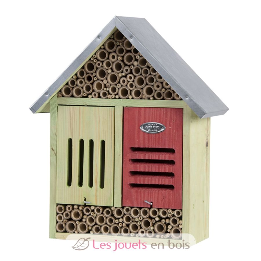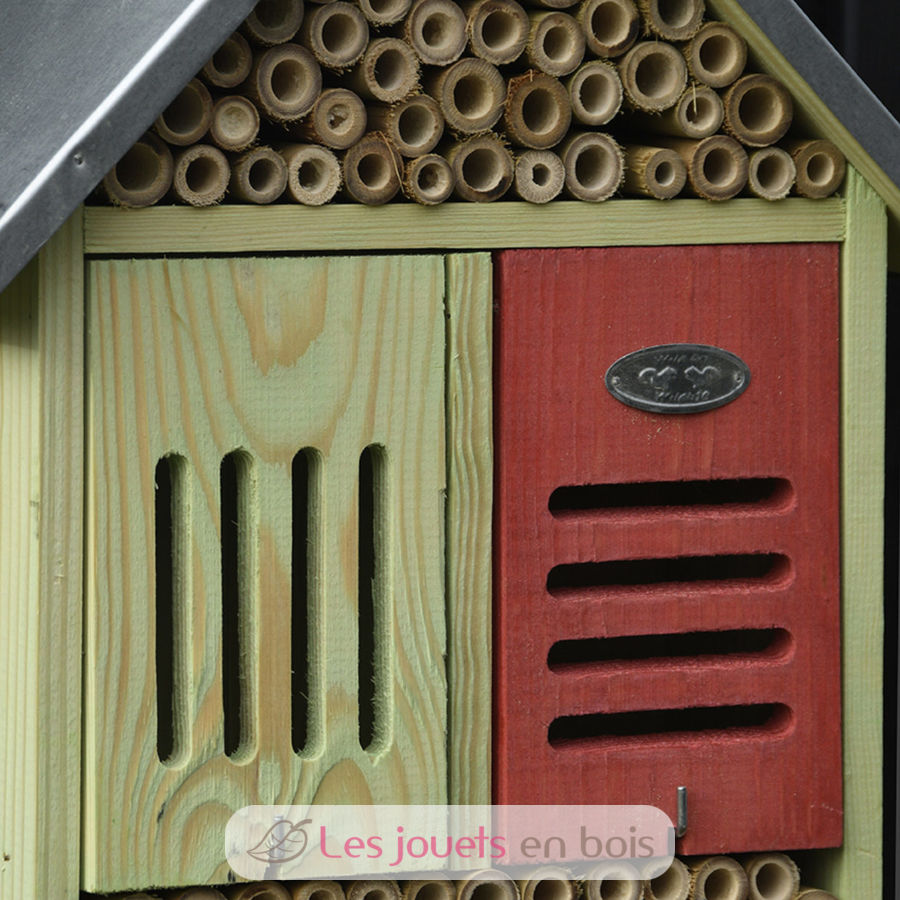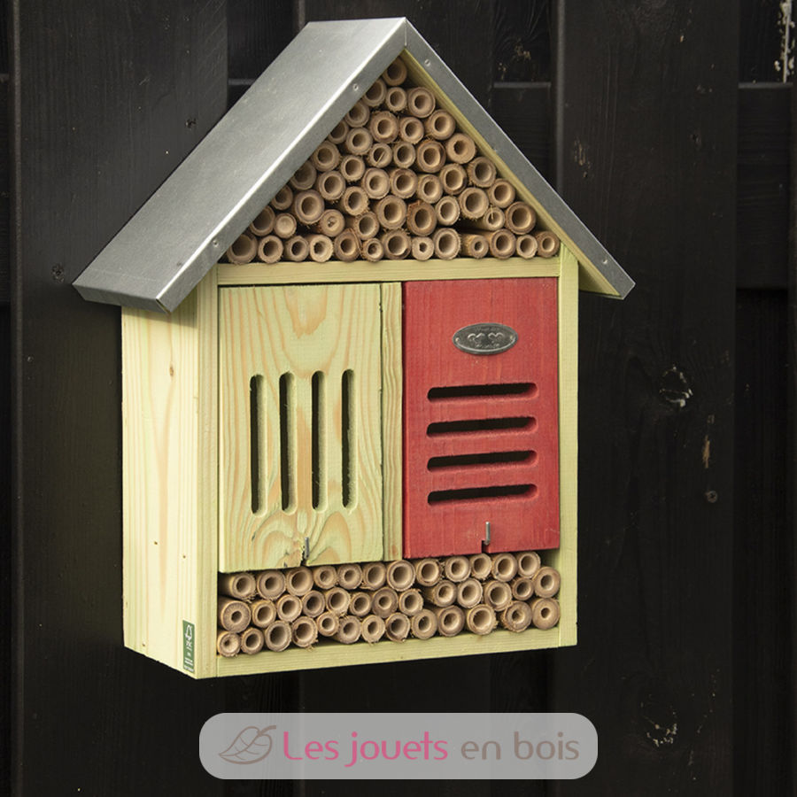 Este hotel de insectos ofrece a las abejas y mariposas la oportunidad de anidar e hibernar al mismo tiempo. El hábitat natural de muchas especies de insectos se ve amenazado por cambios en su hábitat y esta es la forma de ayudarlos y protegerlos.