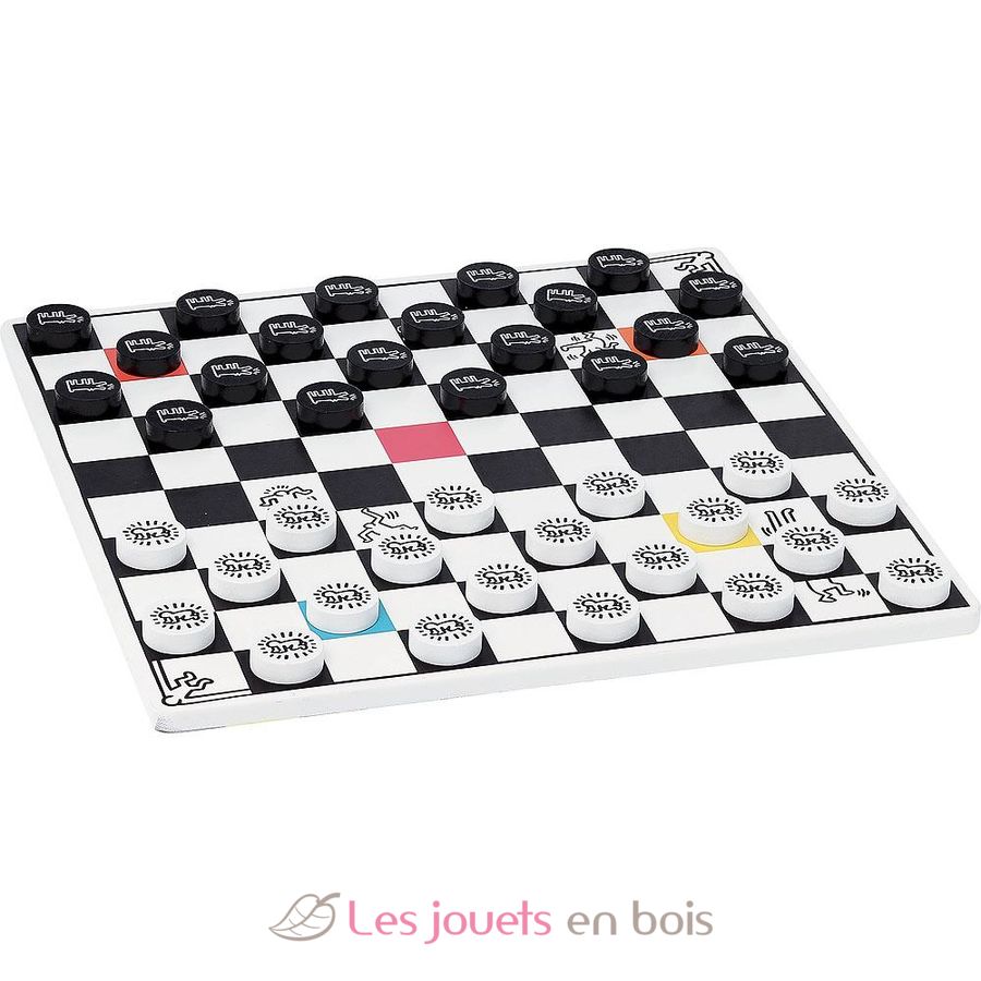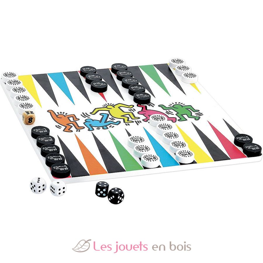 Keith Haring Backgammon Checkers Game, un juego de mesa de madera de colección de Vilac. Referencia 9228.