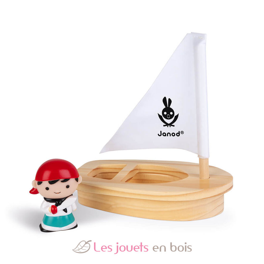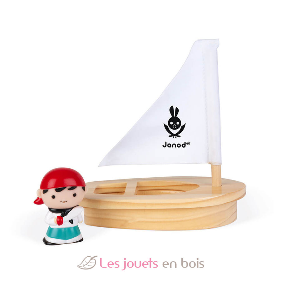 El juguete de baño de John Mouss y su barco, un divertido juego acuático para jugar en la bañera de Janod. Referencia J04712.