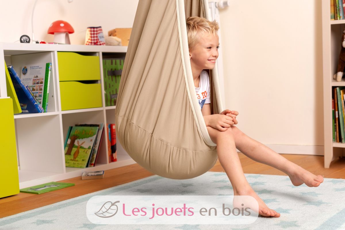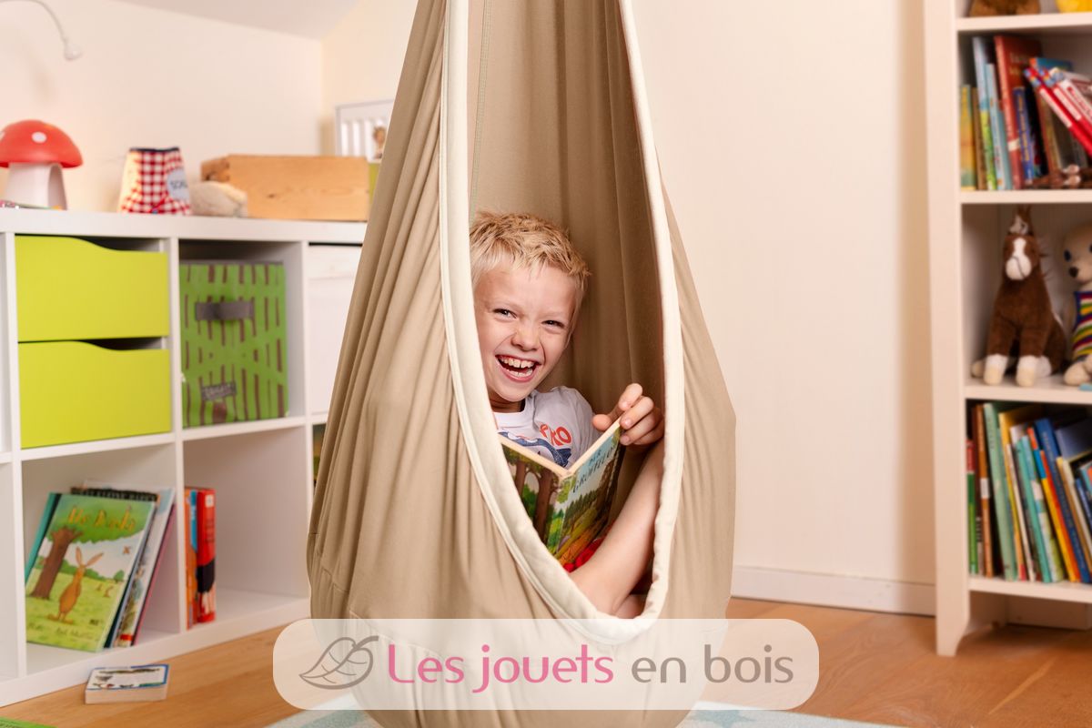 Tejido de algodón orgánico, el nido-hamac colorigolo para niños es un pequeño y suave capullo para recargar las pilas. Ya sea en el jardín o en la casa, el nido-hamac ofrece a los niños un paréntesis de tranquilidad al tiempo que estimula su motricidad. Pero sobre todo, ¡garantiza muchas risas!