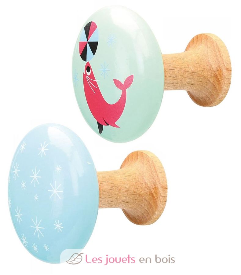 Inicio > Decoración, mobiliario > Decoración de la habitación de los niños > Relojes despertadores, marcos de fotos, medidores de altura, espejos... > Juego de 2 perchas de león marino Ingela P. Arrhenius