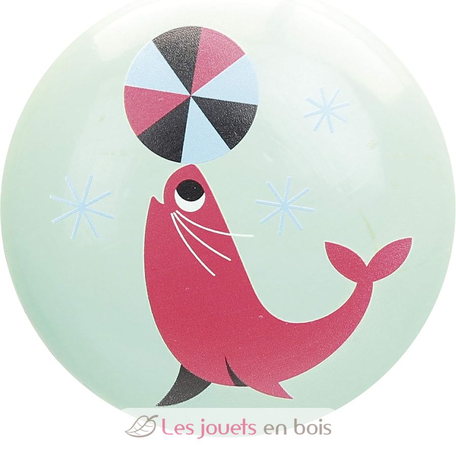 Un precioso juego de dos pinzas de madera maciza lacada, modelo Otarie. Ilustrado por Ingela P. Arrhenius y fabricado en Francia por la marca Vilac.