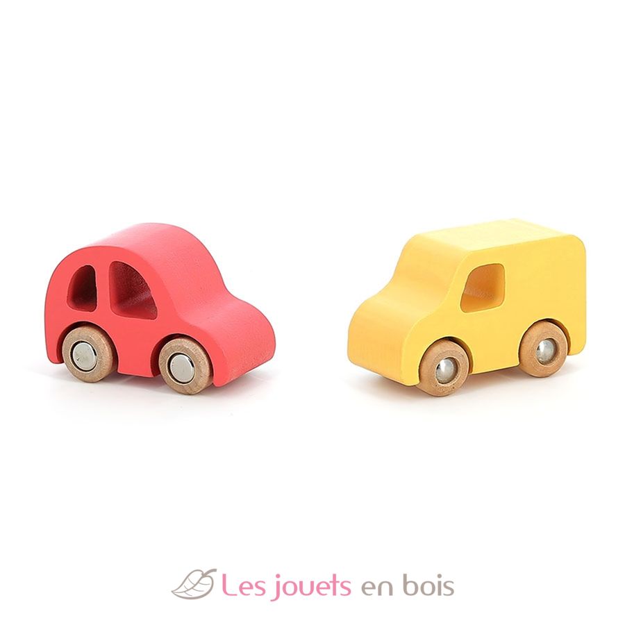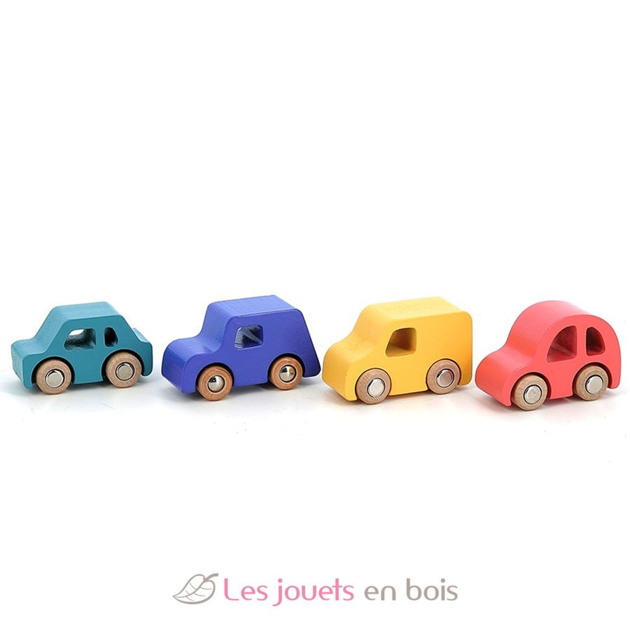 Juego de 4 coches de madera City, vehículos de madera de Vilac. Referencia 2370.