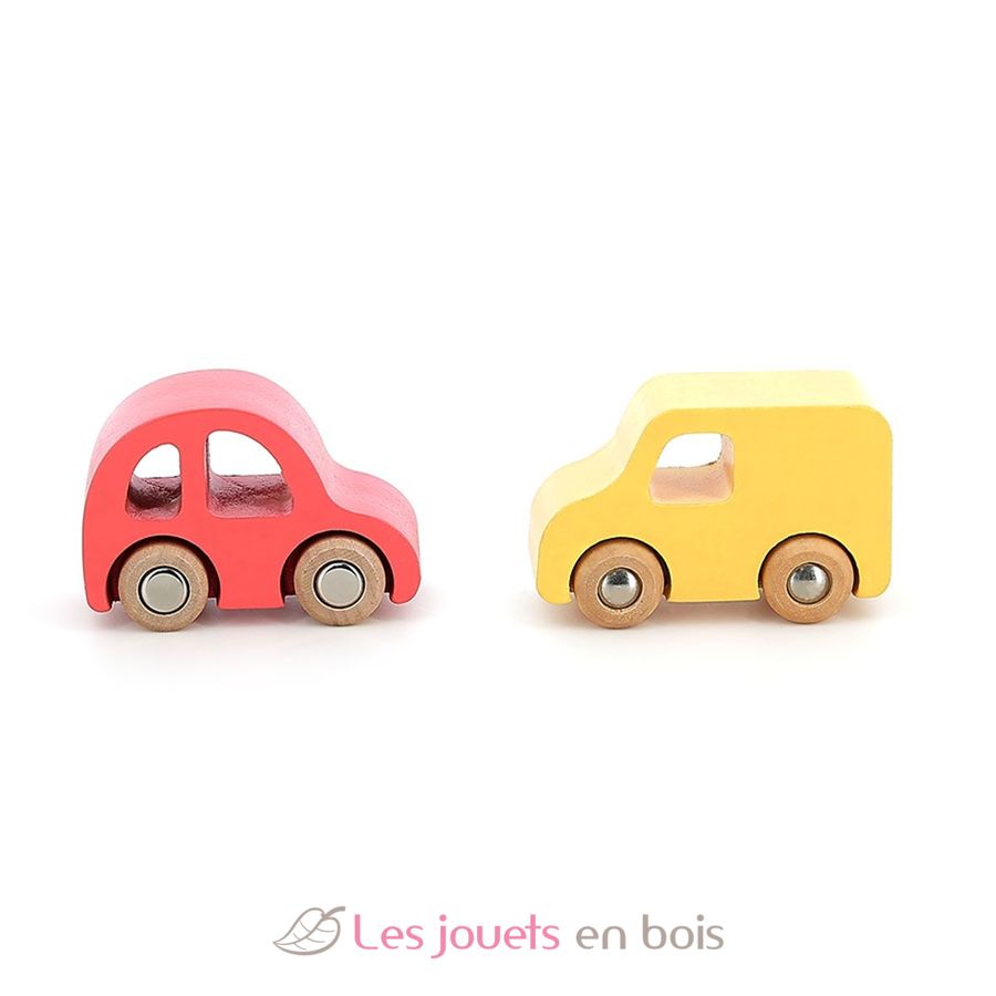Adecuados para pequeñas manos a partir de 3 años, estos pequeños coches coloridos estimularán la imaginación de su hijo y le permitirán desarrollar su destreza fina. Una bonita caja de almacenamiento de madera, que se puede transformar en un soporte decorativo.