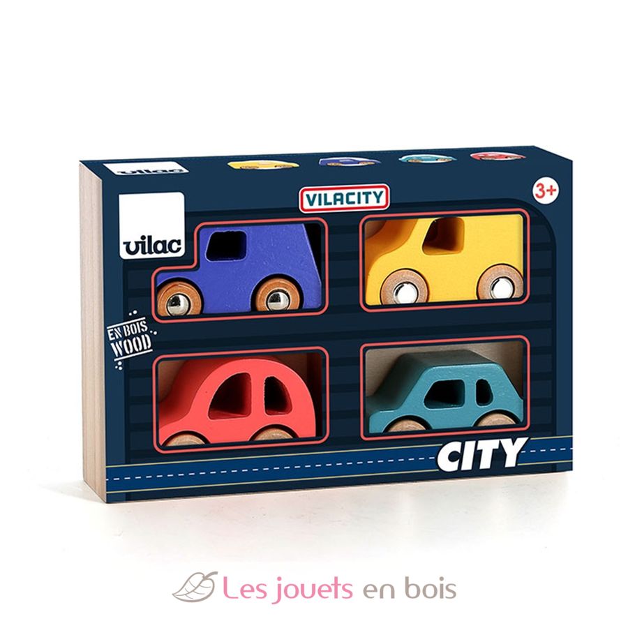 Hay muchas aventuras por vivir en la ciudad gracias a este set de 4 coches City de madera, de la gama Vilacity.