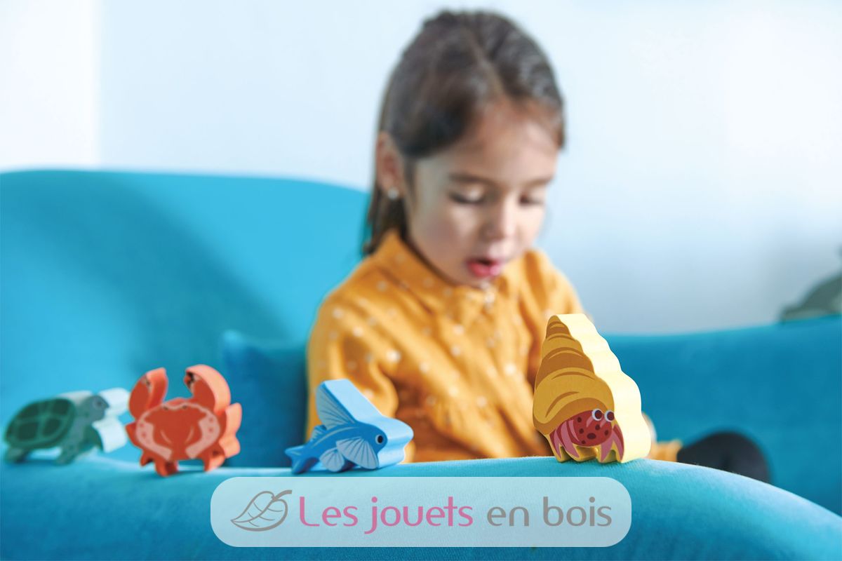 Set de animales marinos de madera de Tender Leaf Toys, figuras de madera. Número de pieza TL8479.