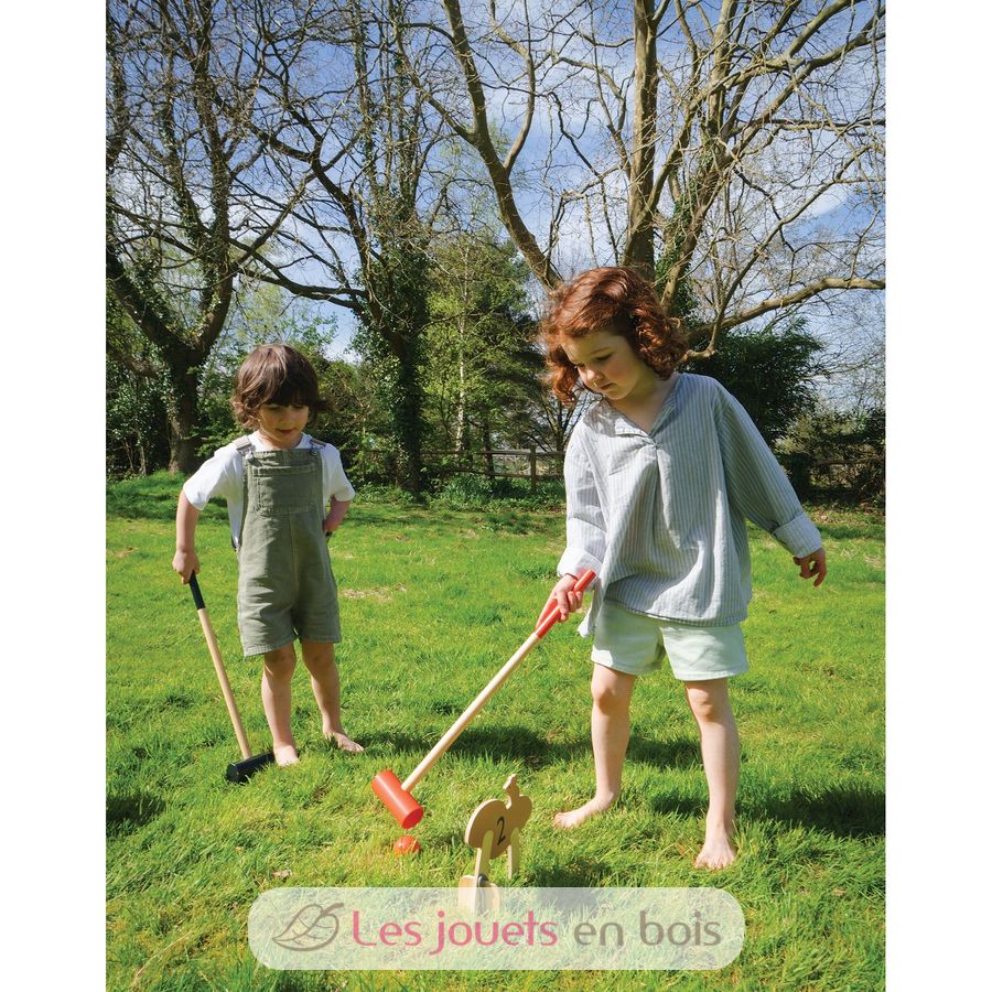 Croquet de madera con animales del bosque, un juego de croquet para niños de la marca Tender Leaf Toys.