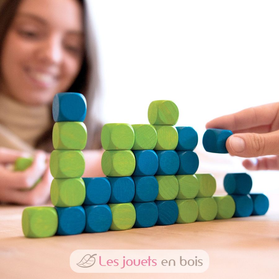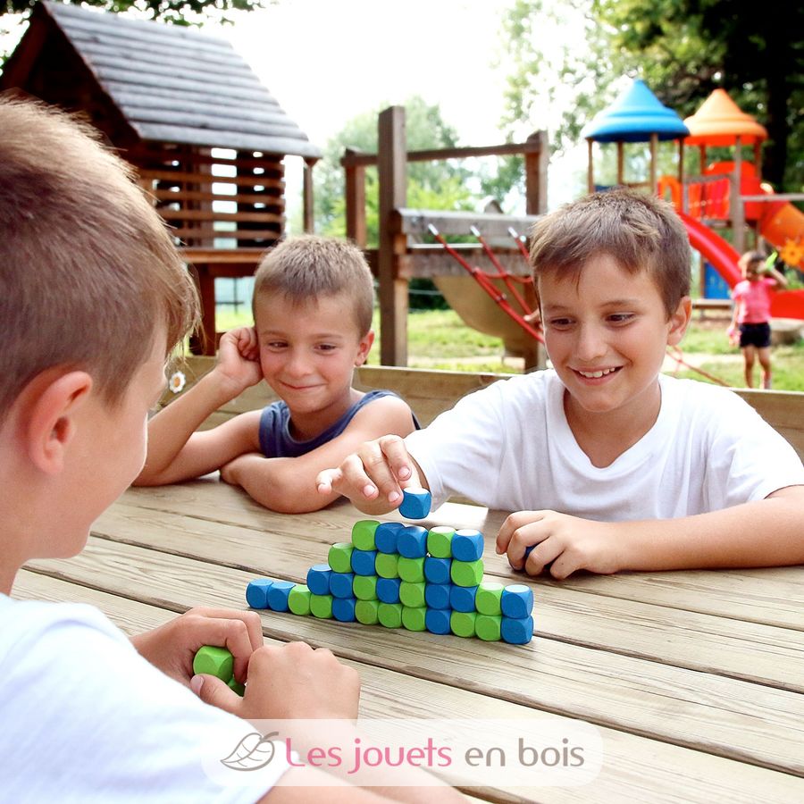 Un juego de estrategia de madera para 2 jugadores. Cada jugador tiene 21 cubos de un color. El objetivo escomponer una línea horizontal, vertical o diagonal de 5 cubos del mismo color. Esta versión permite dos modos de juego: plano sobre la mesa o vertical. Un juego de estrategia para niños pequeños y mayores, que entrena la mente lógica!