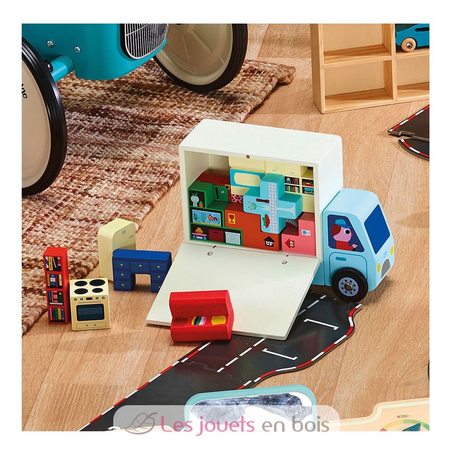 Un concepto divertido que estimulará su lógica, motricidad fina y capacidad de organización. El camión y los muebles también pueden usarse para crear historias, fomentando la imaginación y la creatividad.