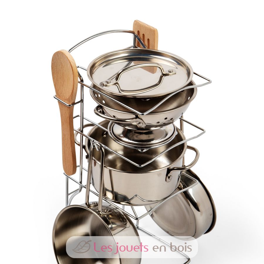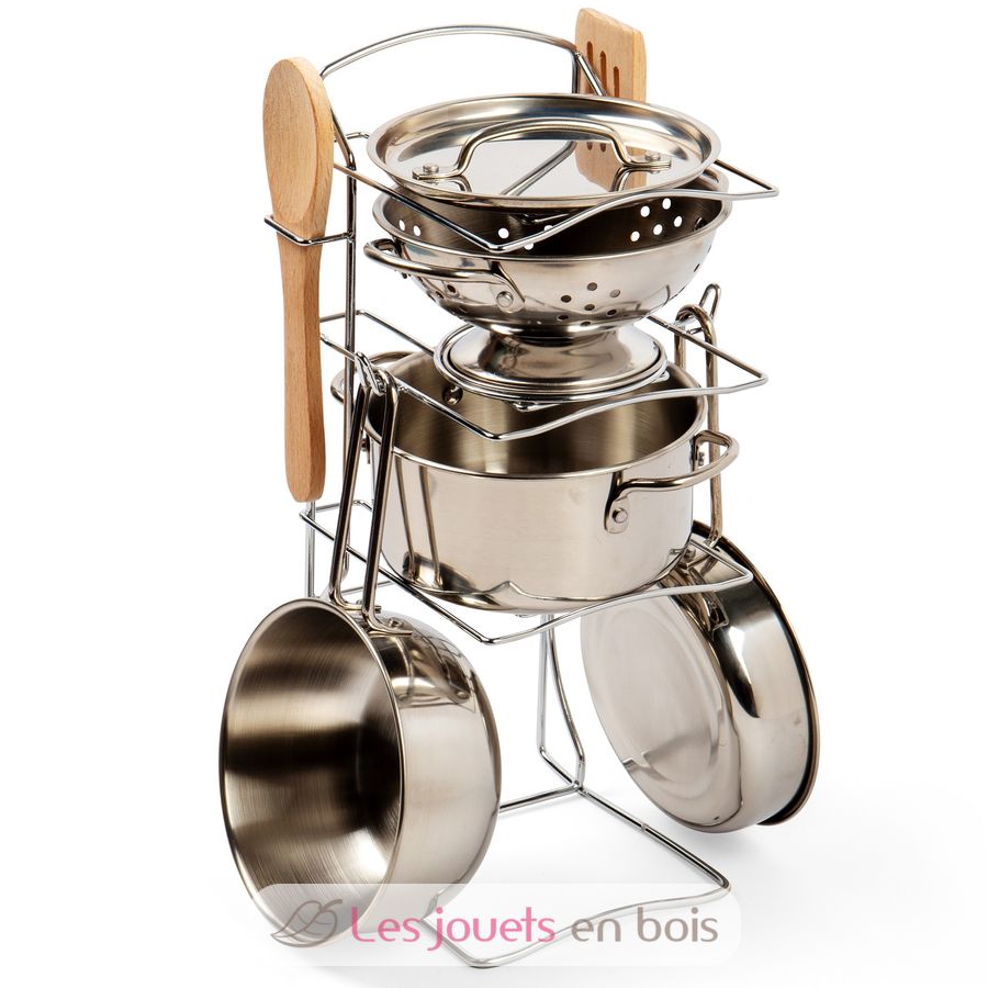 Juego de ollas y sartenes de metal de Bigjigs Toys.