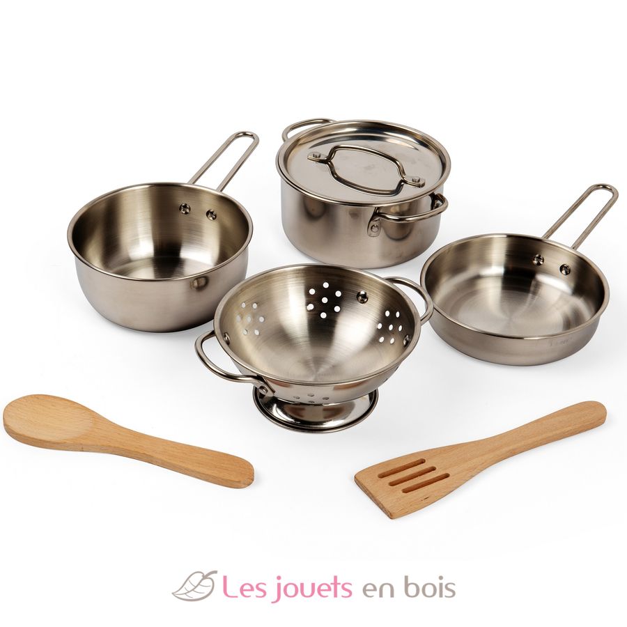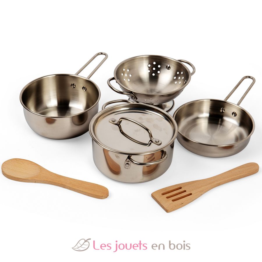 Despierta la imaginación de tu pequeño chef con este juego de ocho piezas de sartenes realistas.
