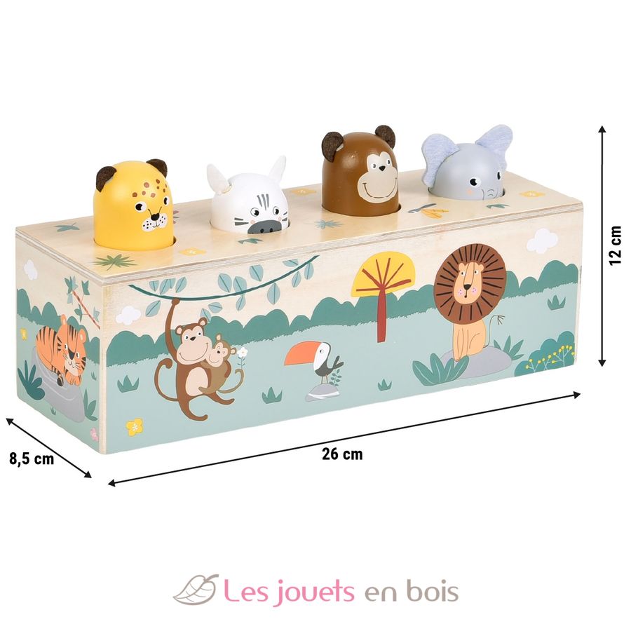 Juego de presionar con sonidos de animales Safari, un juguete de actividades de madera de la marca Small foot.